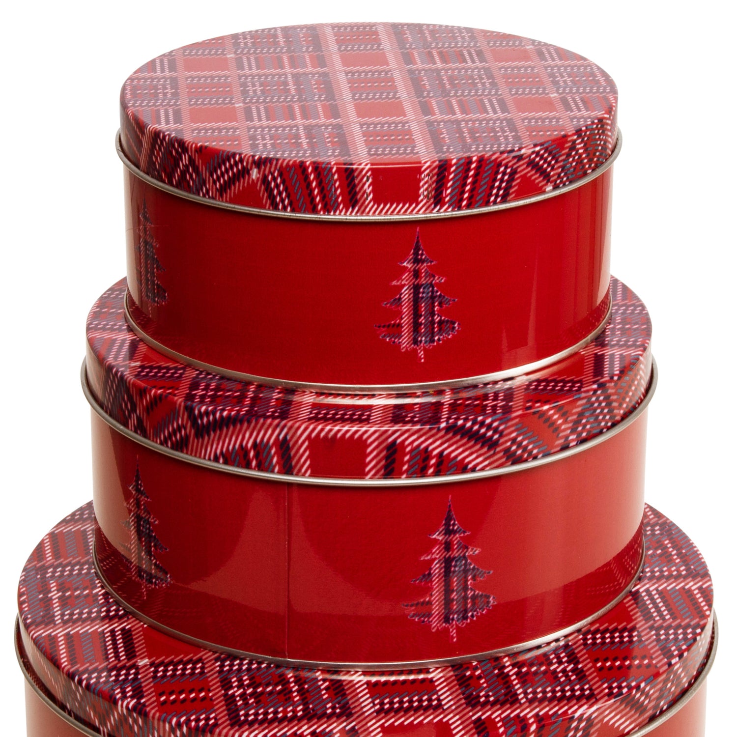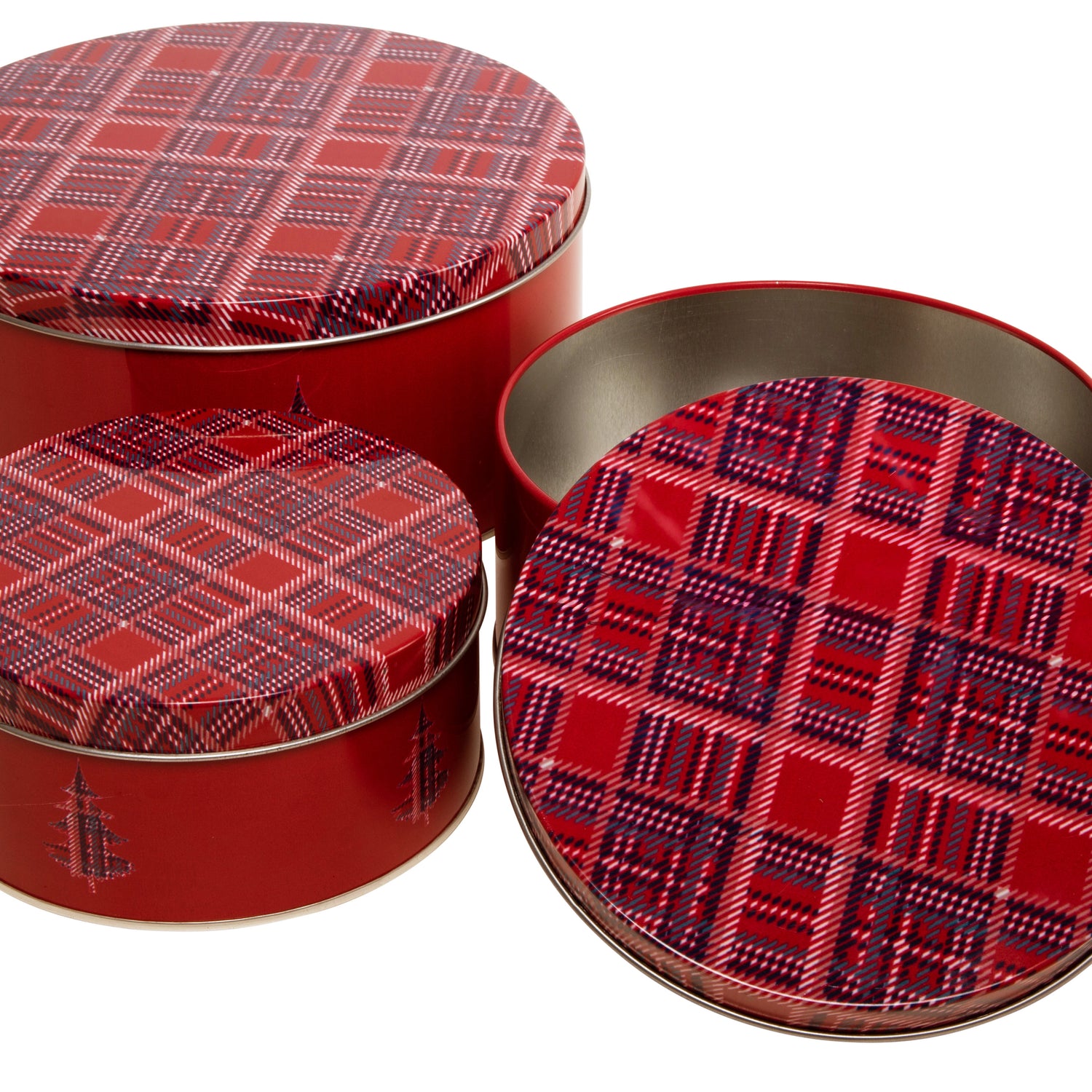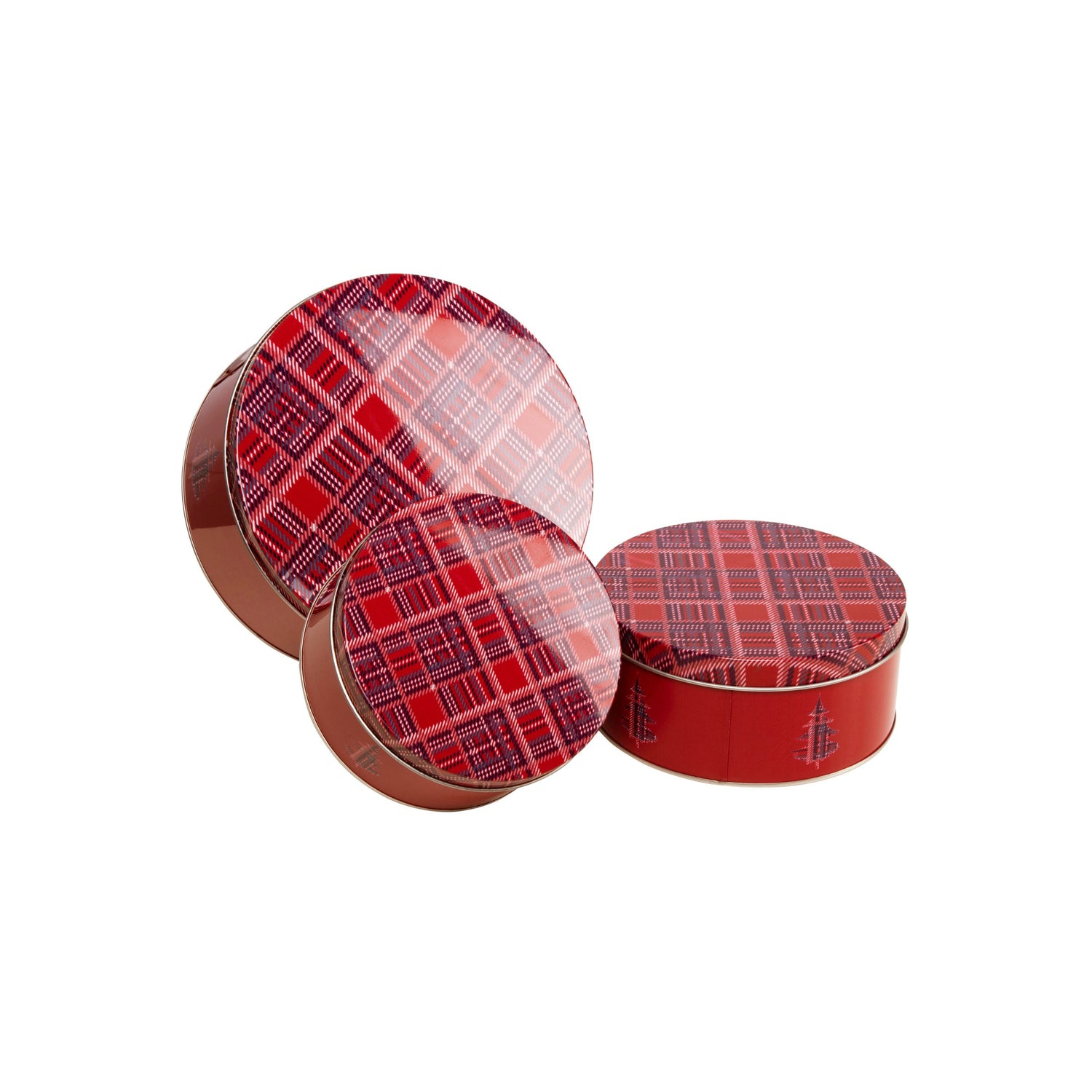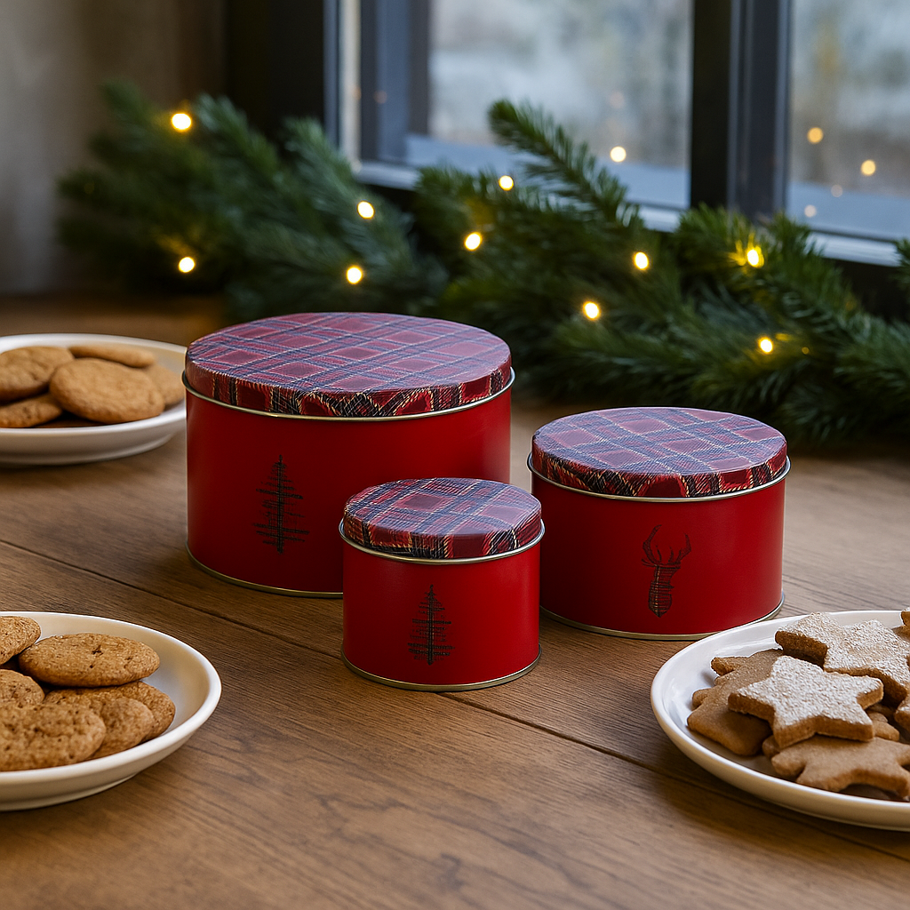 Dekorative og praktiske oppbevaringsbokser i metall, med klassisk rødt rutemønster og juletremotiv. Settet består av tre bokser i ulike størrelser, perfekte til julekaker, smågodt, nøtter eller annen oppbevaring i julen.
