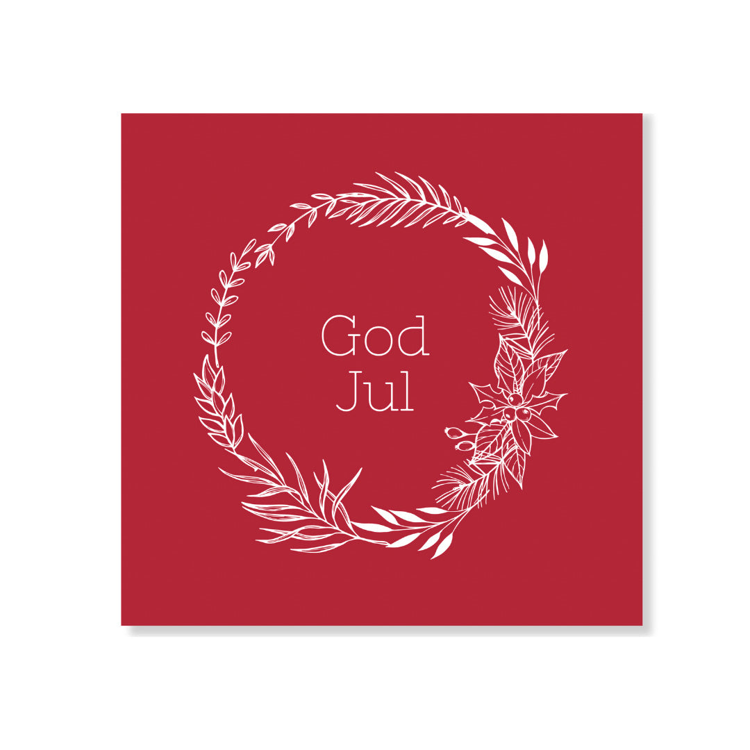 Røde servietter med teksten God jul i hvit. Serviettene er 3-lagspapirservietter og kommer i en pakke med 20 stk. Disse serviettene er perfekt til julehøytiden.