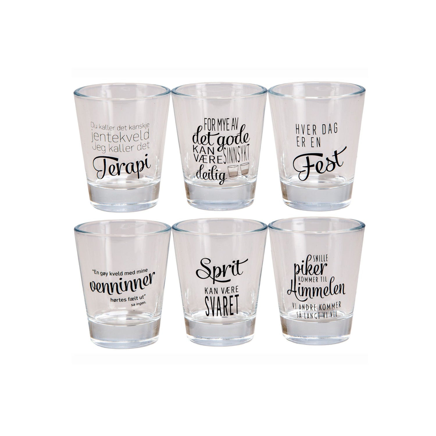 Gjør jentekvelden komplett med denne! Hvert glass har sitt eget humoristiske sitat. Enten det er bursdag, vorspiel eller bare en koselig kveld med venninner, blir disse glassene garantert en snakkis.