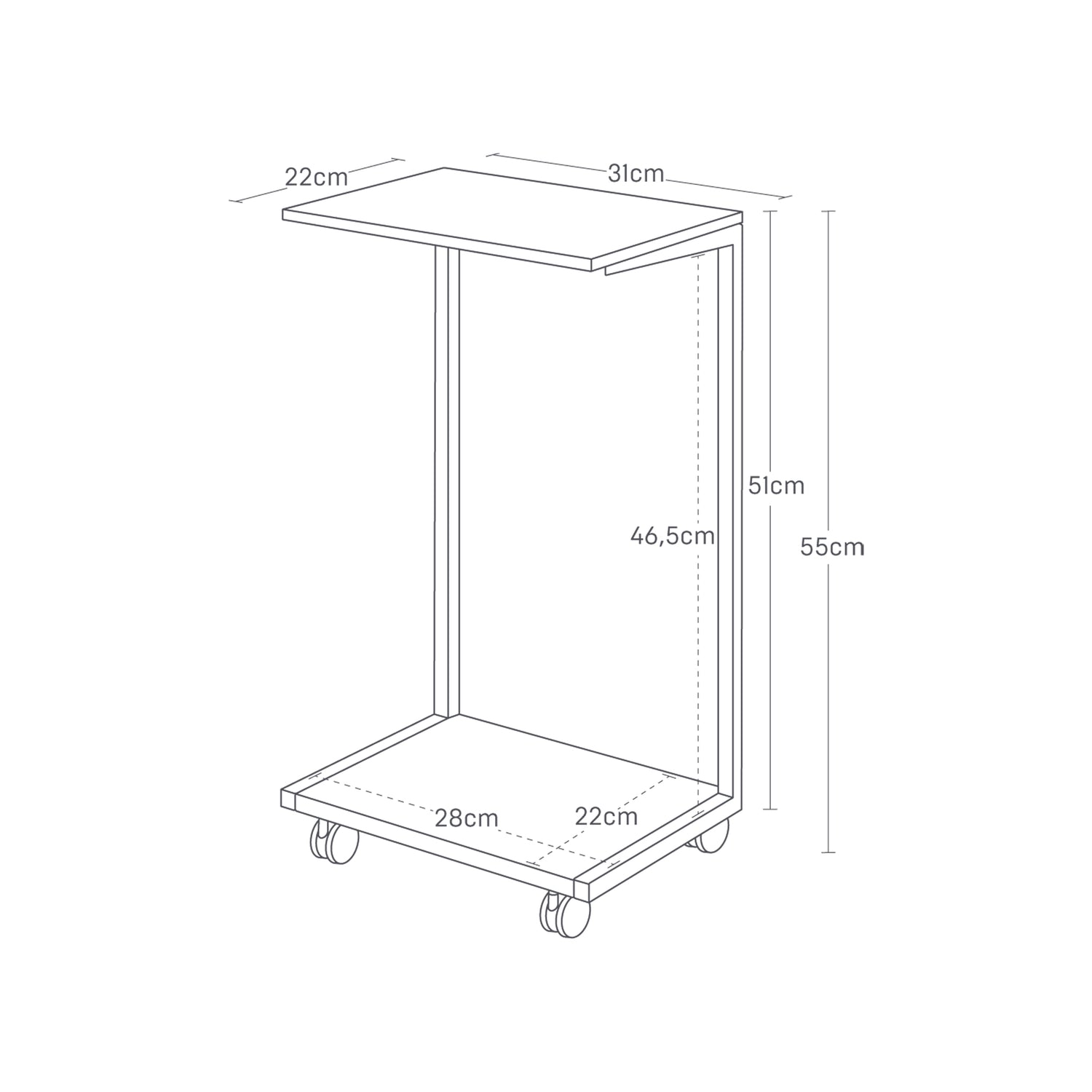 - Mål: ca. 55 × 31 × 22 cm