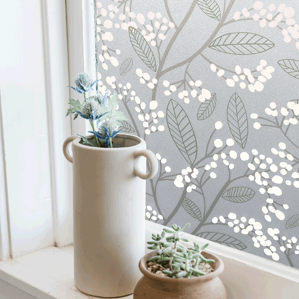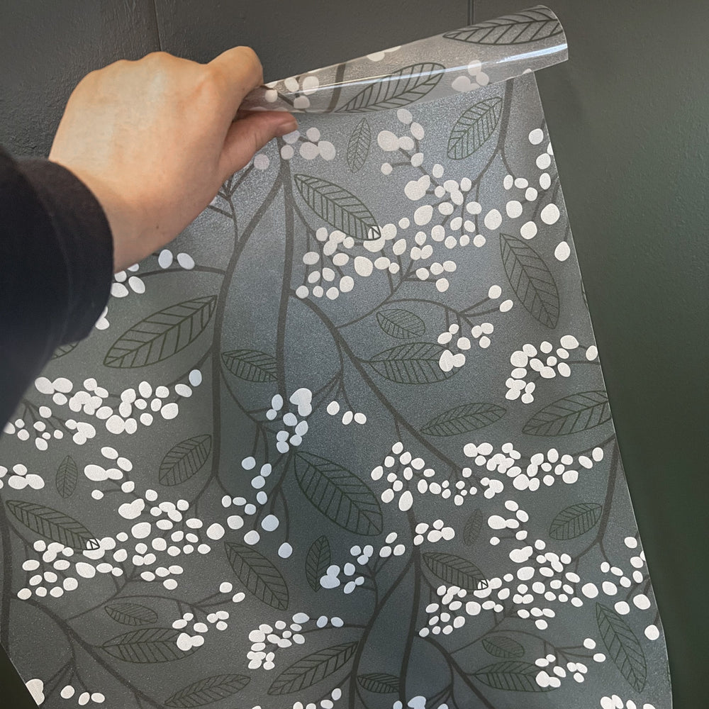 Static Premium Millie er en vindusfolie med lekkert motiv av snøbær og blad.