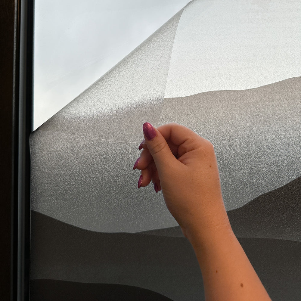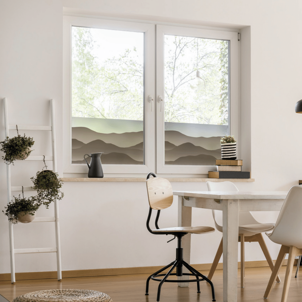 Den frostede effekten i folien skaper en myk, drømmende atmosfære, samtidig som det blokkerer for direkte innsyn. Landskapsmotivet gir en rolig og naturlig følelse til rommet, og passer spesielt godt i rom hvor du ønsker å bringe inn elementer av naturen, som for eksempel i stue, soverom eller kontor. Dette designet kombinerer funksjonalitet med estetikk, og tilfører et sofistikert preg til vinduet.