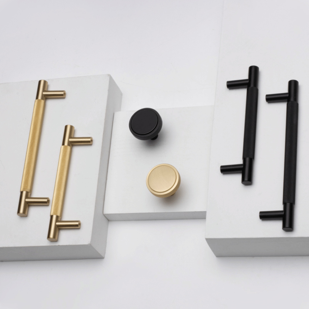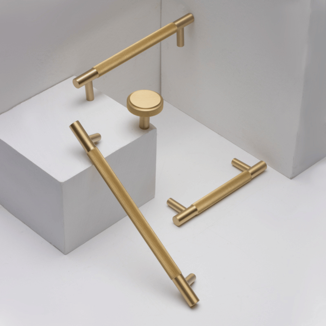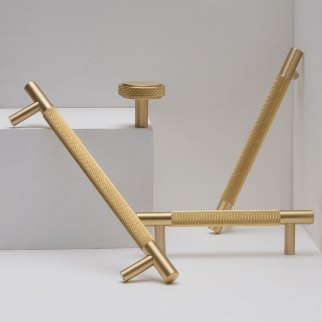Stockholm håndtak i børstet messing. Dette flotte håndtaket har et moderne og tidløst design. Perfekt til skuffer/skap, kjøkkenet eller badet.
