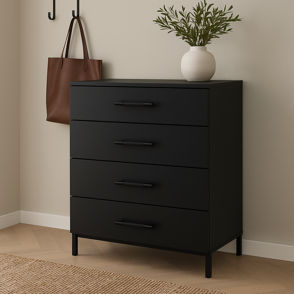 Stockholm håndtak i sort messing. Dette nydelige håndtaket har et moderne og stilfullt design som passer perfekt i nordiske hjem. Perfekt til både kommoden, kjøkkeninnredning, nattbord - gjør møblene dine unike med dette nydelige håndtaket. Stockholm håndtakene finnes i både sort, gull og grå.