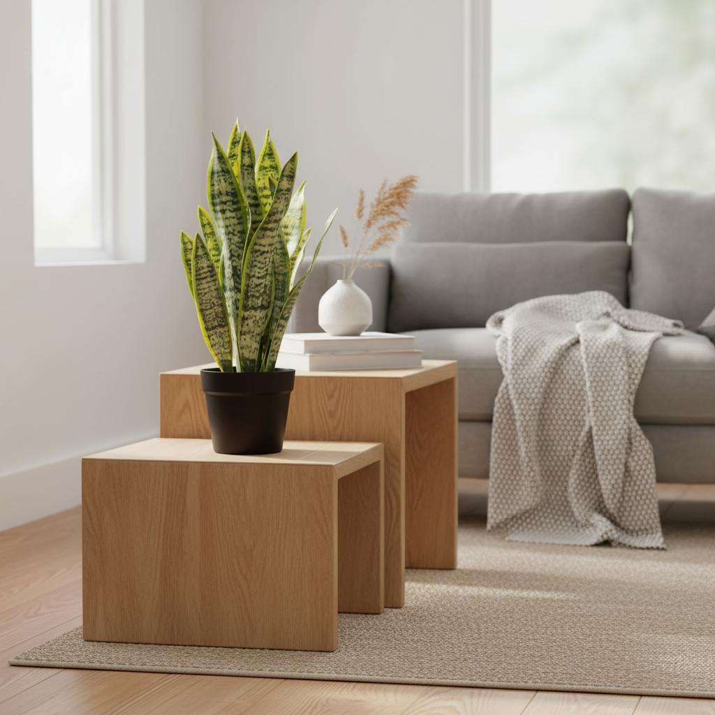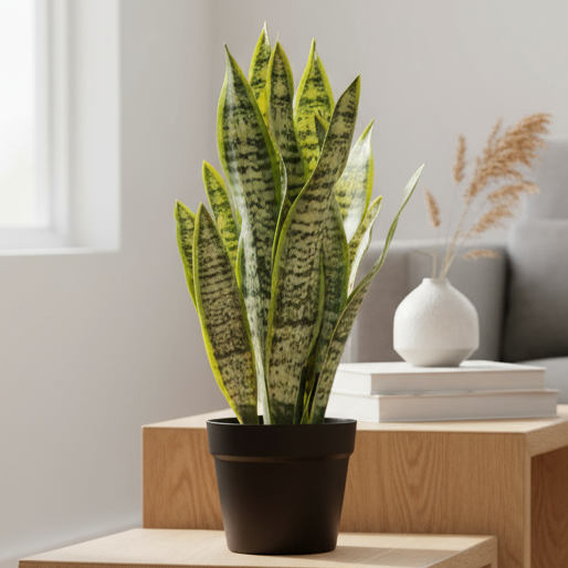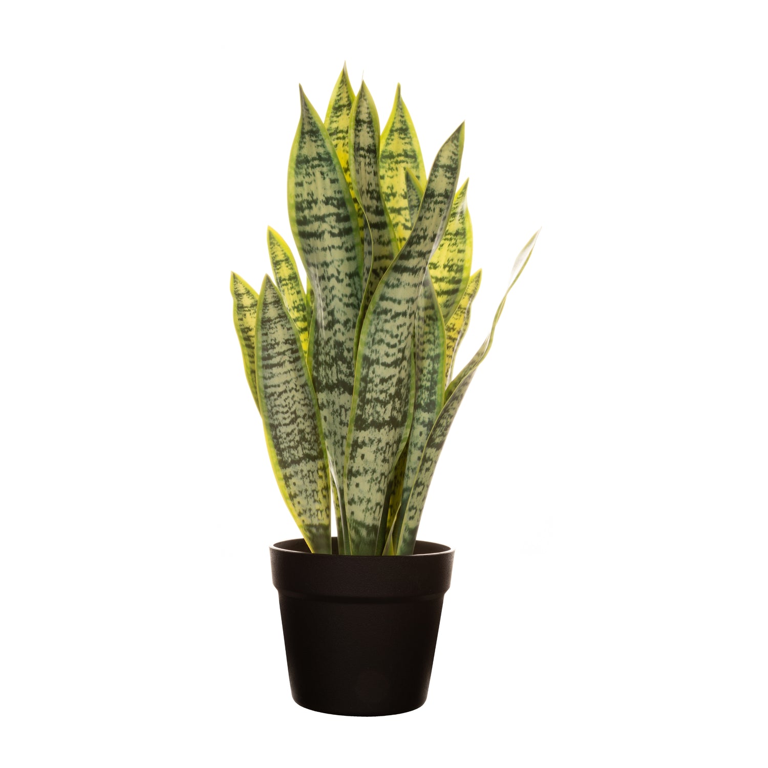 Kunstig svigermors tunge i sort. En naturtro plante som gir et friskt og grønt uttrykk uten behov for stell. De høye, spisse bladene har realistiske fargenyanser og struktur som gjør planten naturtro både på nært hold og på avstand.