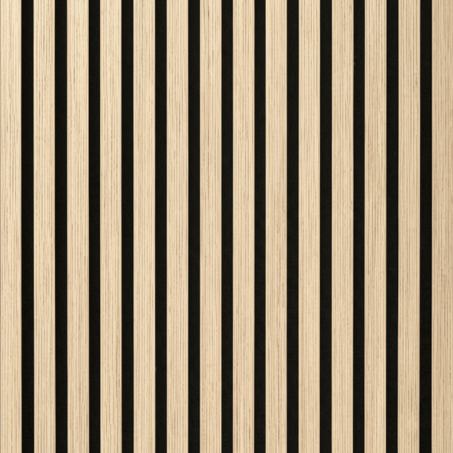 Dette er en vareprøve av nordisk eik akustikkplate for å se den lyse trefargen og kjenne kvaliteten på materialet før du kjøper.