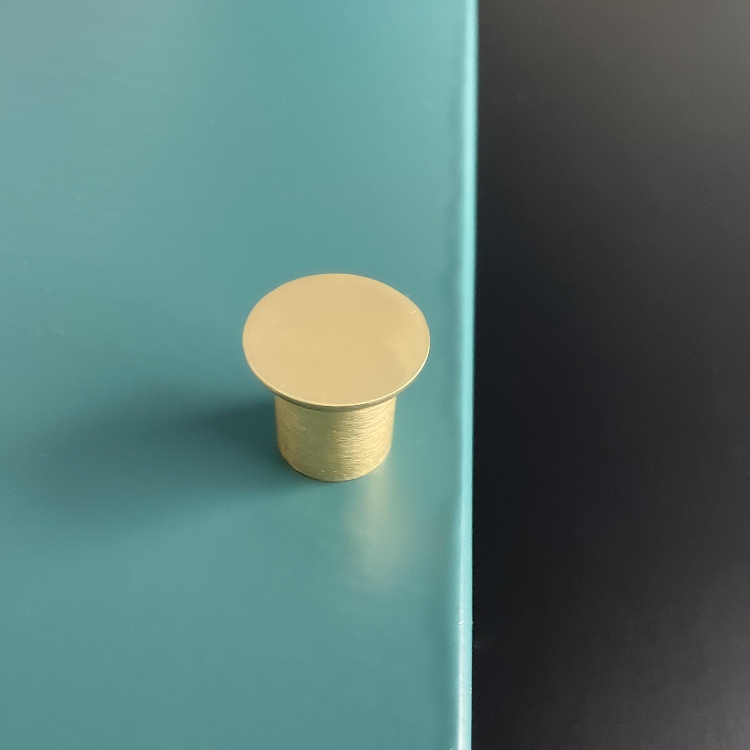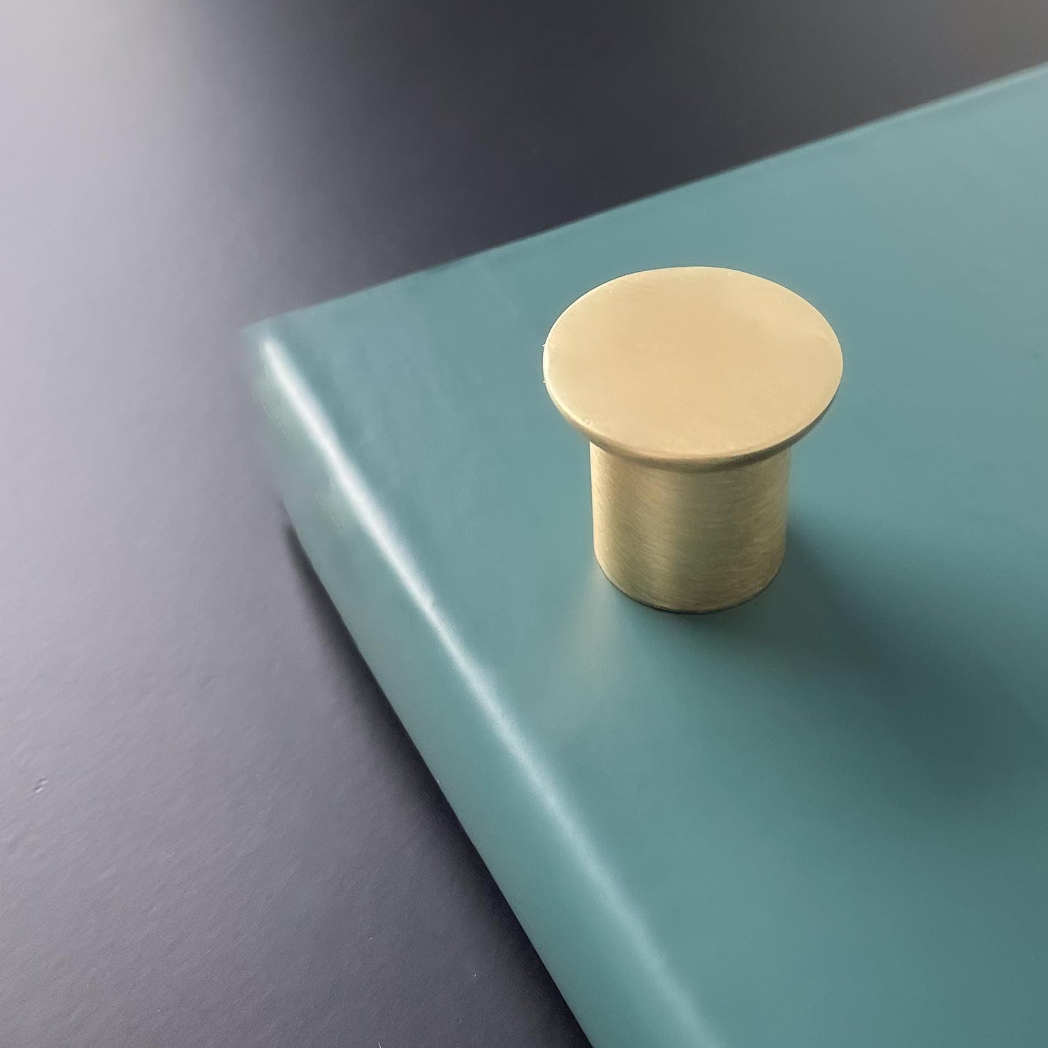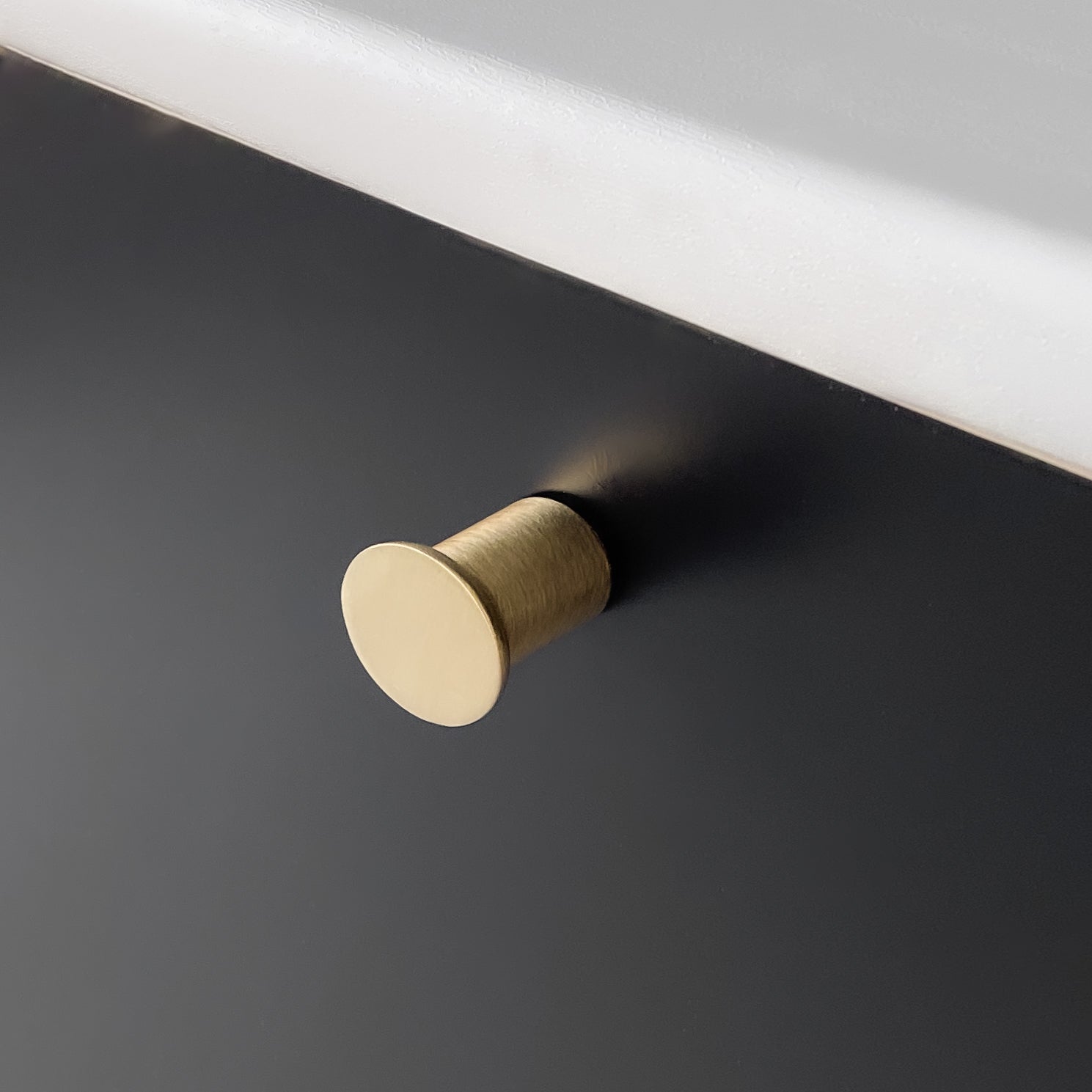 Vakker knott i børstet messing med et moderne og minimalistisk design. Perfekt til å løfte skap, kjøkkeninnredningen, baderomsinnredningen, kommode eller nattbord med en vakker detalje i dempet gullfarge.