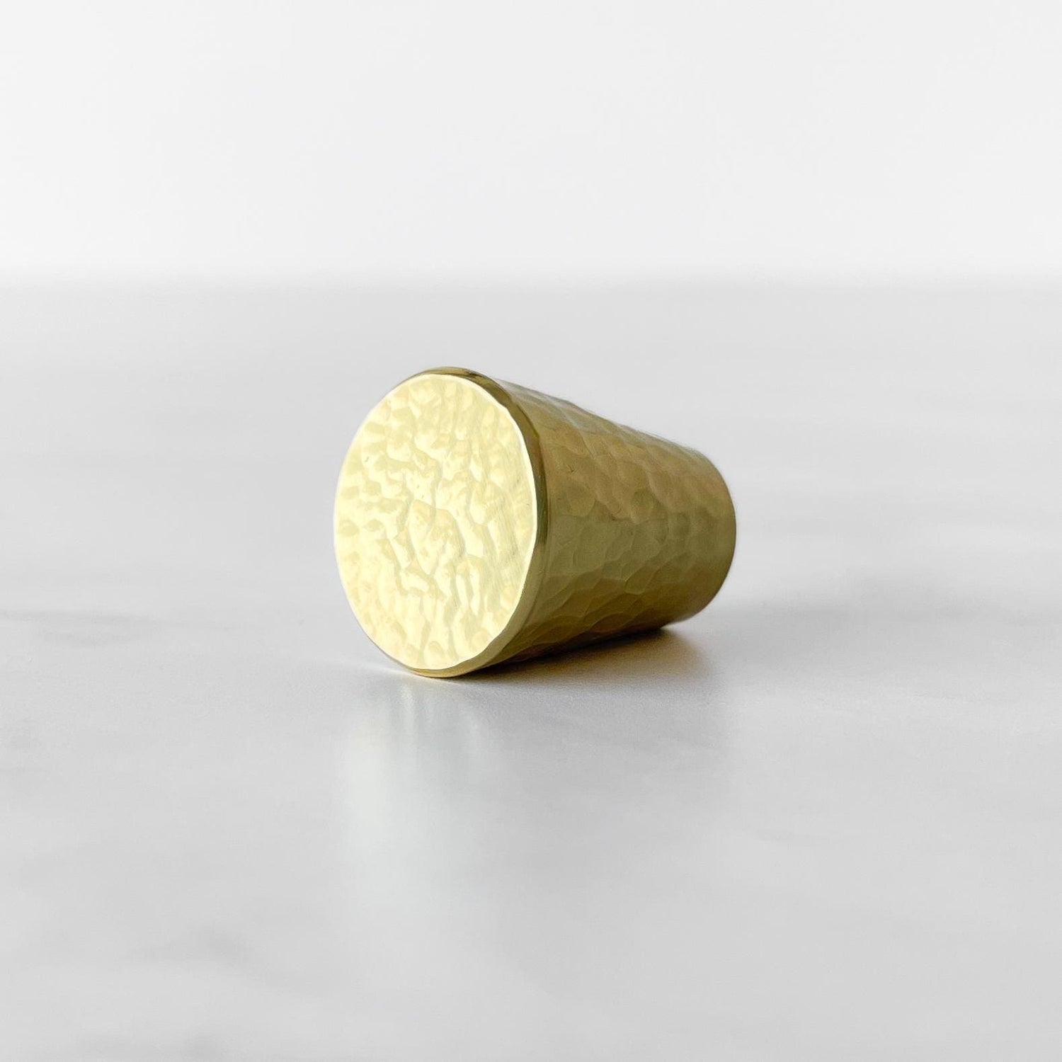 Oslo knott i hamret messing. Denne rålekre knotten har et moderne og stilfullt design. Perfekt til både kommoden, skuffer og skap, kjøkkeninnredning, nattbord - gjør møblene dine unike med denne nydelige knotten.