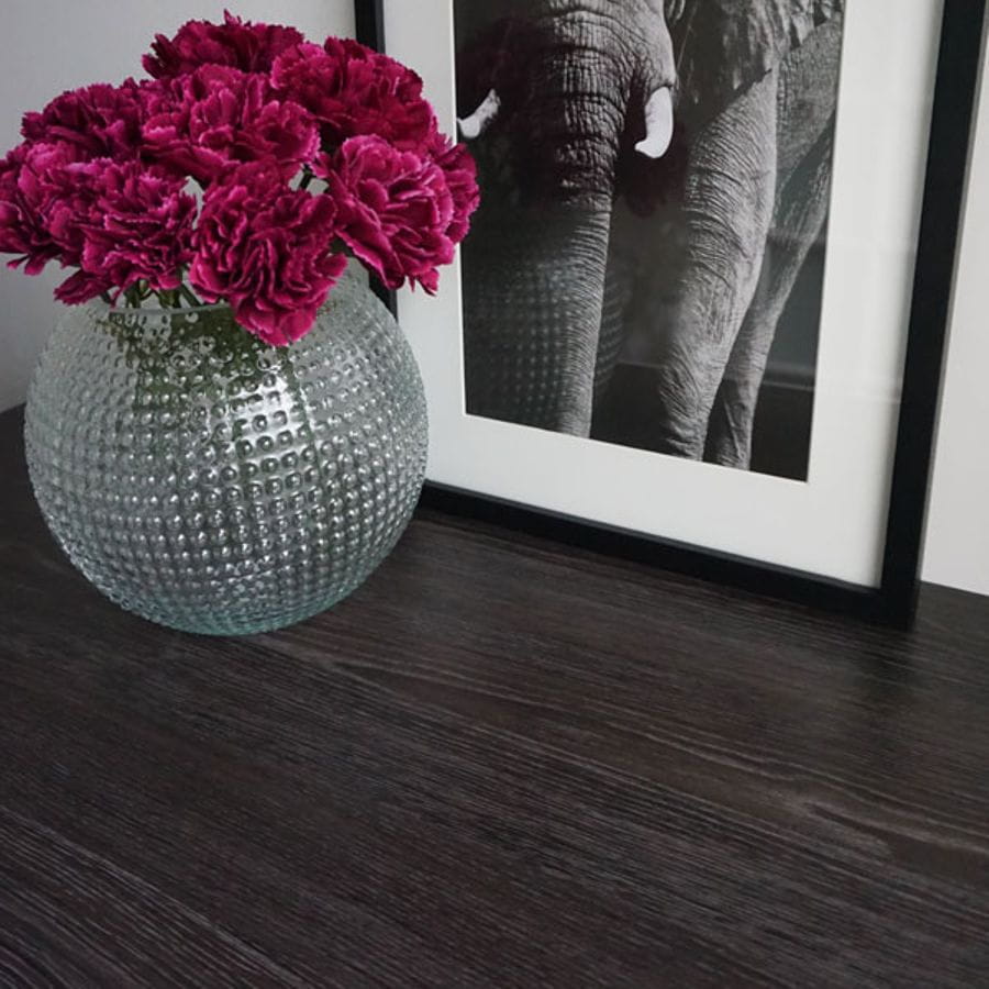 Eike Sheffield Umbra etterligner eik i en nydelig dempet mørkebrun farge. Folien passer perfekt til bord, garderobeskap, kommode mm.