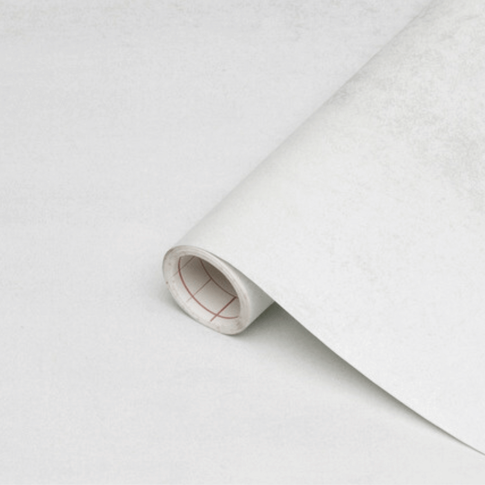 Denne populære folien etterligner mikrosement i hvit og er et populært valg til å fornye vegger på bad, gamle stuebord og spisebord.