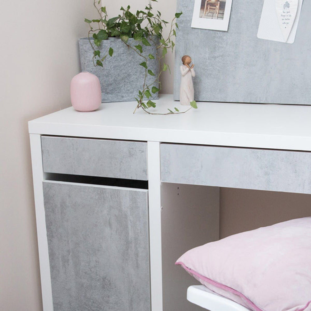 Kontaktplasten har en lys grå overflate med en subtil betonglignende tekstur. Den gir inntrykk av en industriell overflate med en lett struktur som minner om mikrosement eller betong.