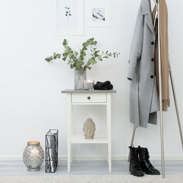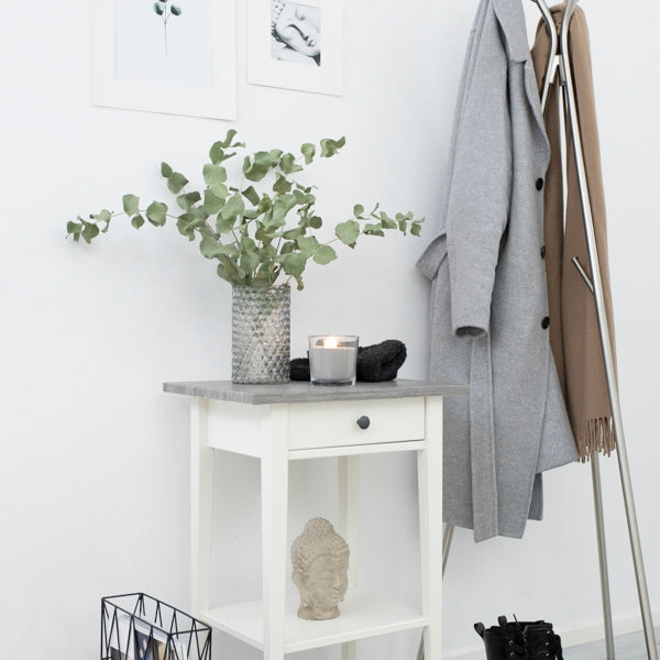 Denne gråtonede treimitasjonen kan passe godt i moderne og minimalistiske interiørstiler, hvor den tilfører en følelse av eleganse og ro.