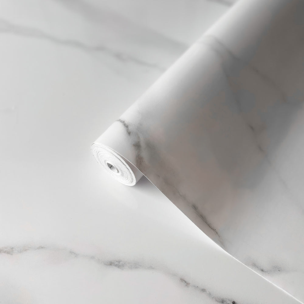 Denne nydelige folien Marmor klassisk hvit kontaktplast etterligner hvit marmor med grå marmorering. Marmoreringen er subtil og spres seg over et stort område for å få fremhevet den pene klassiske marmordesignet.