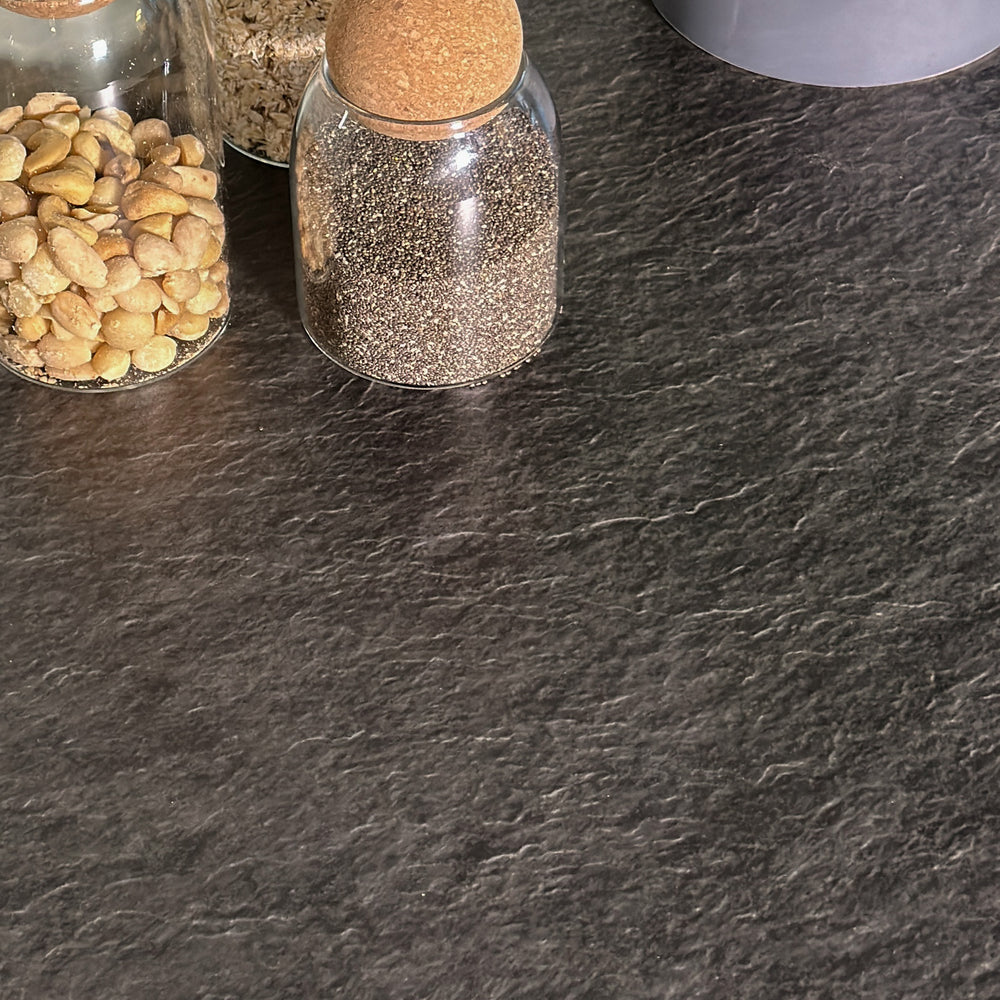 Skifer matt er en moderne folie som etterligner grå skifer og er perfekt til å fornye vegger, kjøkkenbenk, bordplater eller andre møbler.