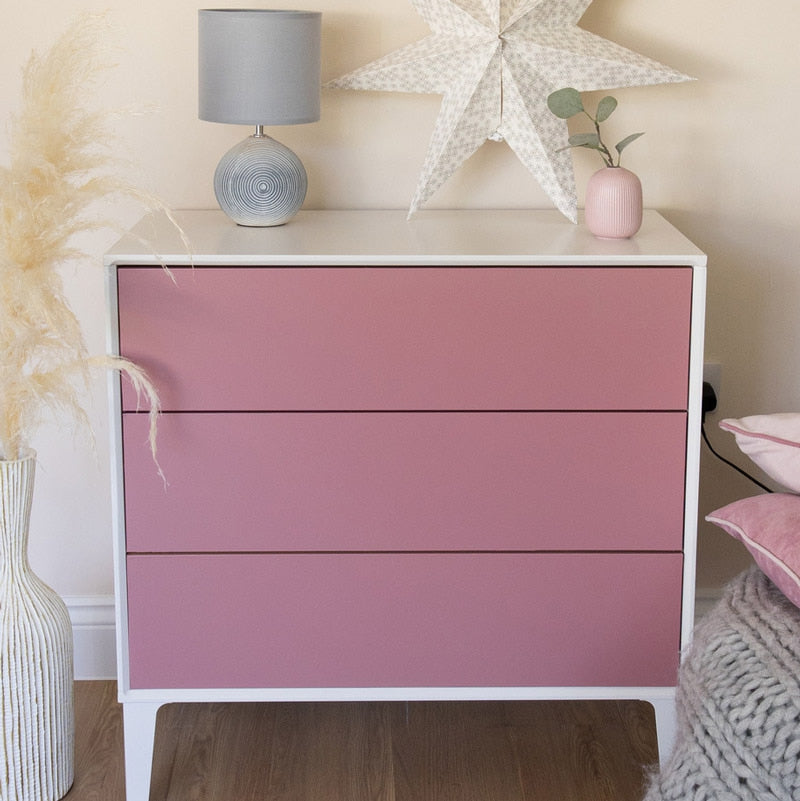 Nydelig kontaktplast i en moderne, dempet rosafarge. Denne er perfekt til å fornye møbler på barnerommet, TV-benken, skjenken m.m.