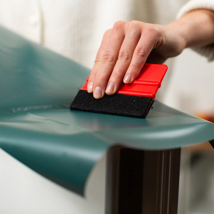 Folien kommer ferdig med lim på baksiden, så det eneste du trenger å gjøre er å fjerne bakpapiret og fest den der du ønsker.
