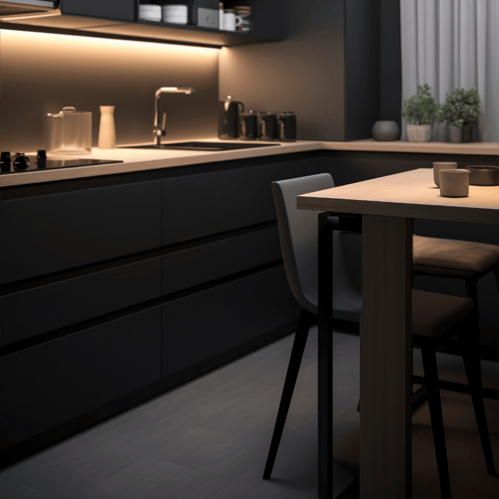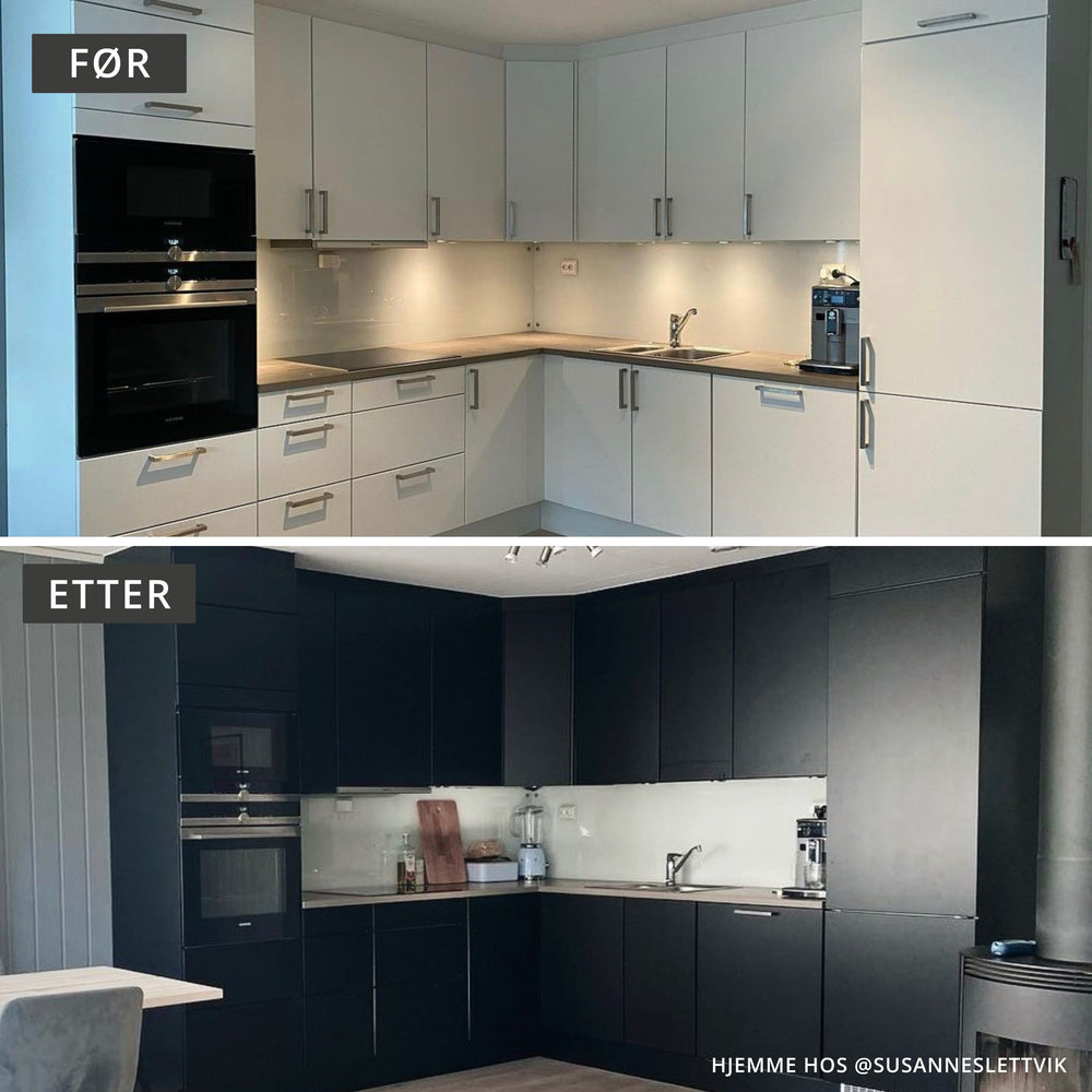 Uni matt sort kontaktplast har forblitt en kundefavoritt i flere år. Den dekorative folien blir ofte brukt til å foliere kjøkkenfronter, skap og dører på 1-2-3. Med sin silkematte finish skaper den et moderne inntrykk av hjemmet.