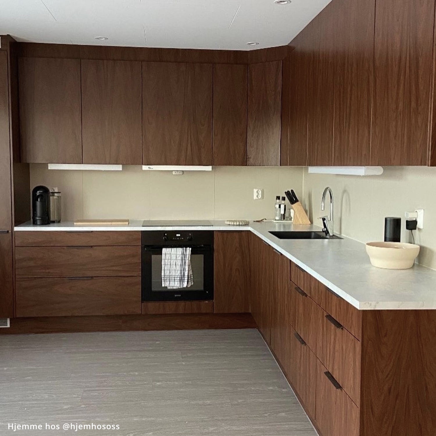 Kjøkkenfronter i valnøtt blir mer og mer populært. Vi har plukket ut design som passer perfekt sammen til deg som tenker å fornye kjøkkenet til valnøtt. Vår dempet Marmor romeo hvit matt skaper en spennende kontrast mot det varme treverket, men har ikke for bråkete design. Perfekt match!