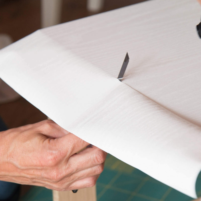 Folien kommer ferdig med lim på baksiden, så det eneste du trenger å gjøre er å fjerne bakpapiret og fest den der du ønsker.