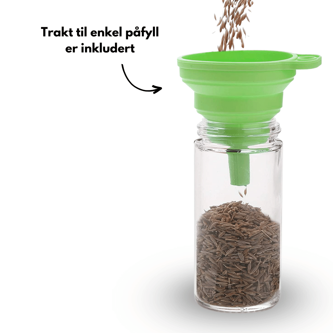 Lei av rotete krydderhylle? Da er disse runde krydderglassene perfekte for deg. Hold kjøkkenet ditt ryddig og organisert med denne flotte pakken med krydderglass. Pakken inneholder 12 glass, trakt, børste. Hvert krydderglass kommer med strølokk med hull. Perfekt til oppbevaring av krydder.