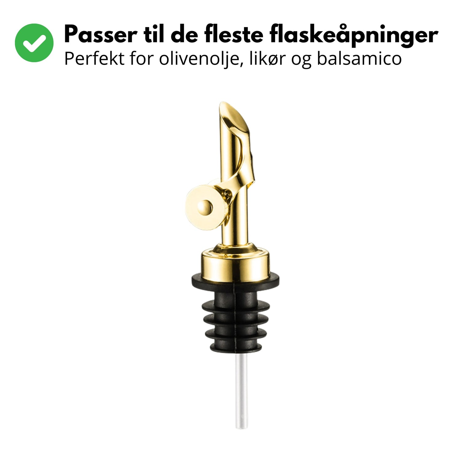 Skjenkepropp i gull gir en elegant og funksjonell løsning for oppbevaring og servering av olje, eddik og andre væsker.
