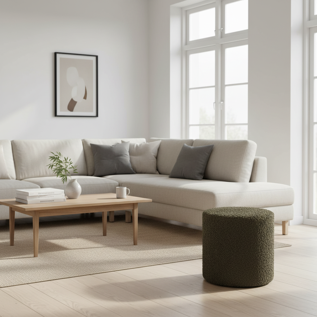 Gi hjemmet ditt et lunt og moderne preg med Ejby Pouf. Den runde formen og det myke teddytrekket i grønn gir puffen et koselig uttrykk som både tilfører varme og stil til rommet.