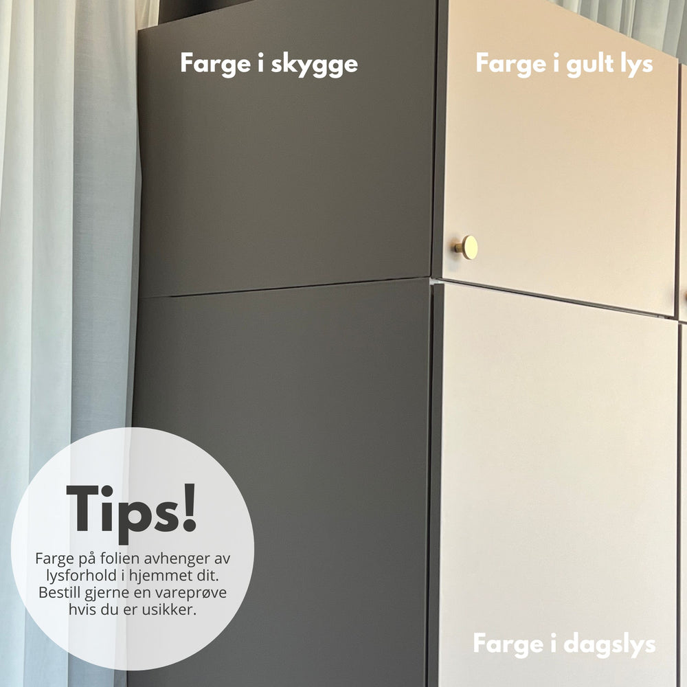 Folien kommer ferdig med lim på baksiden, så det eneste du trenger å gjøre er å fjerne bakpapiret og fest den der du ønsker.