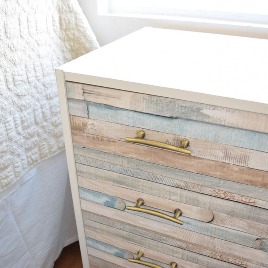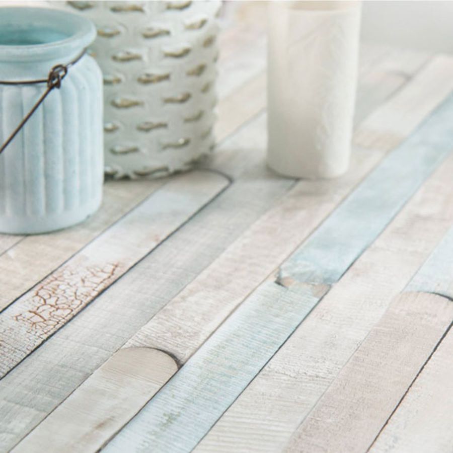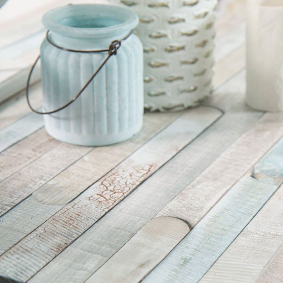 Rio Ocean kontaktplast imiterer drivved i form av planker med behagelige pastellfarger.