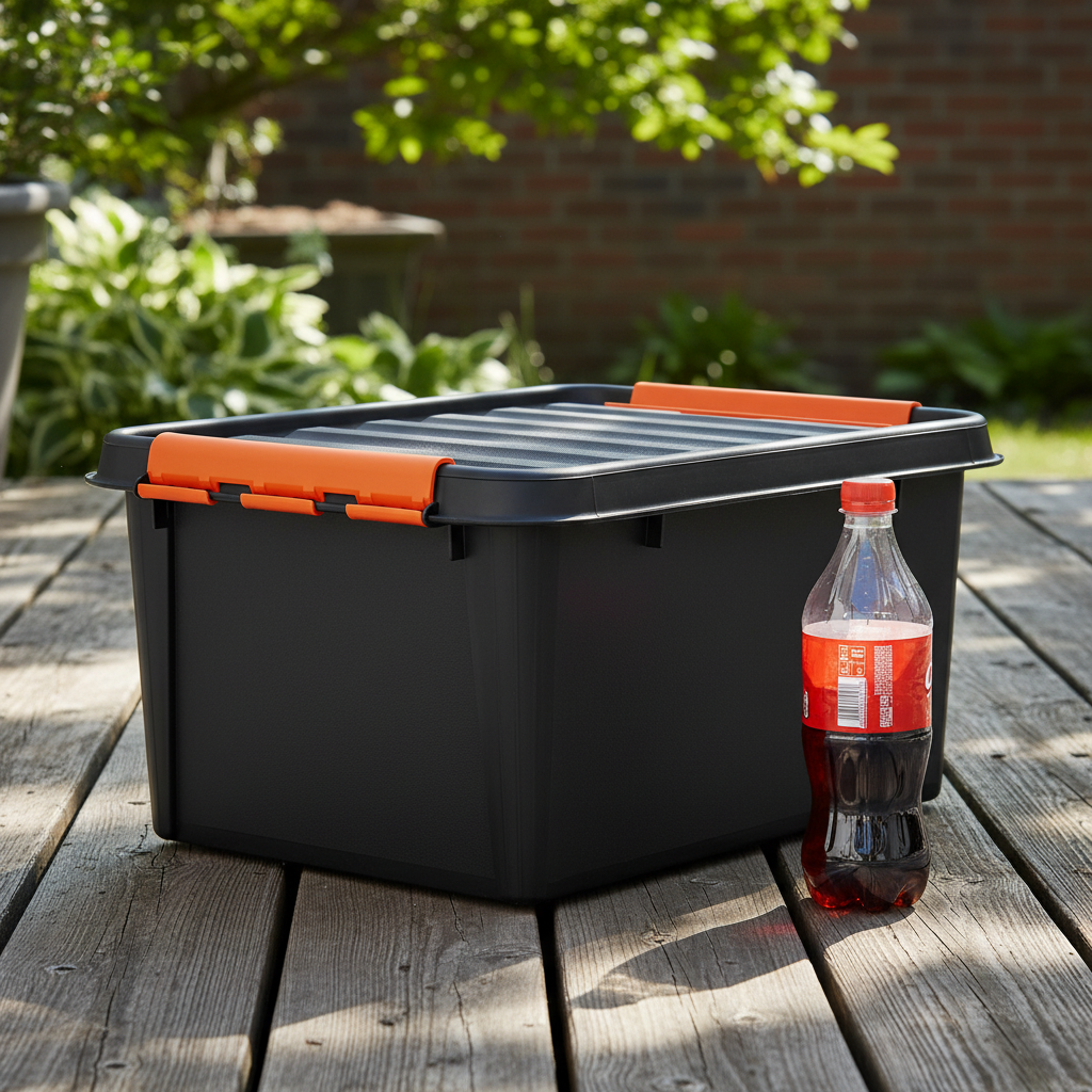 Du får en solid oppbevaringsboks på 31 liter med kraftige låseklips og lokk som beskytter innholdet. Den sterke konstruksjonen gjør boksen motstandsdyktig mot slag, belastning og store temperatursvingninger.