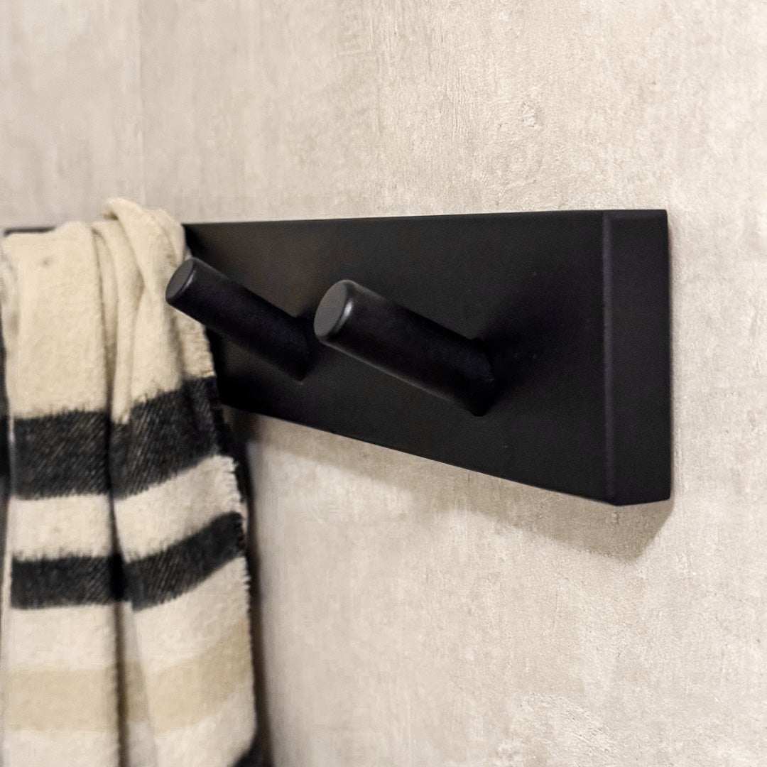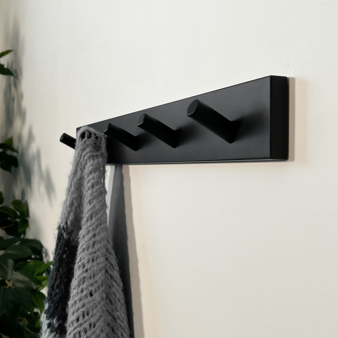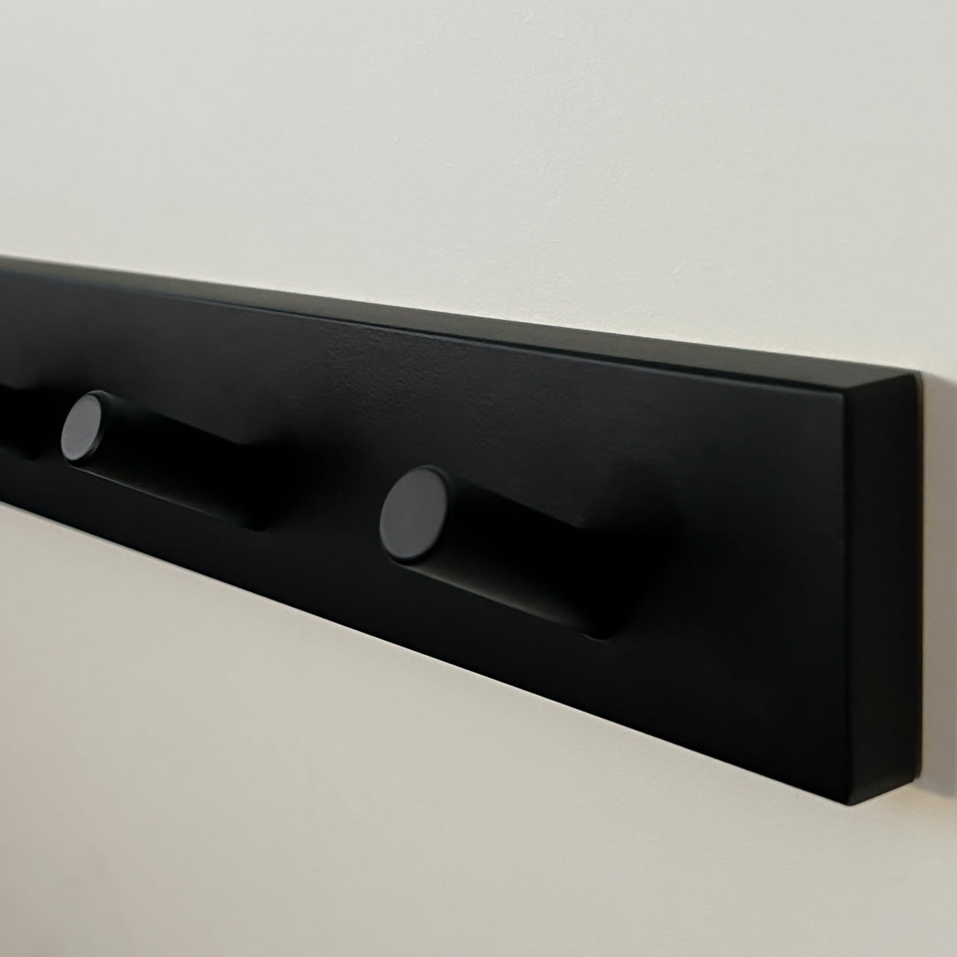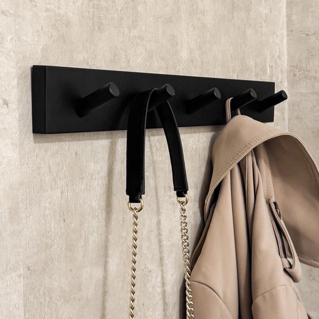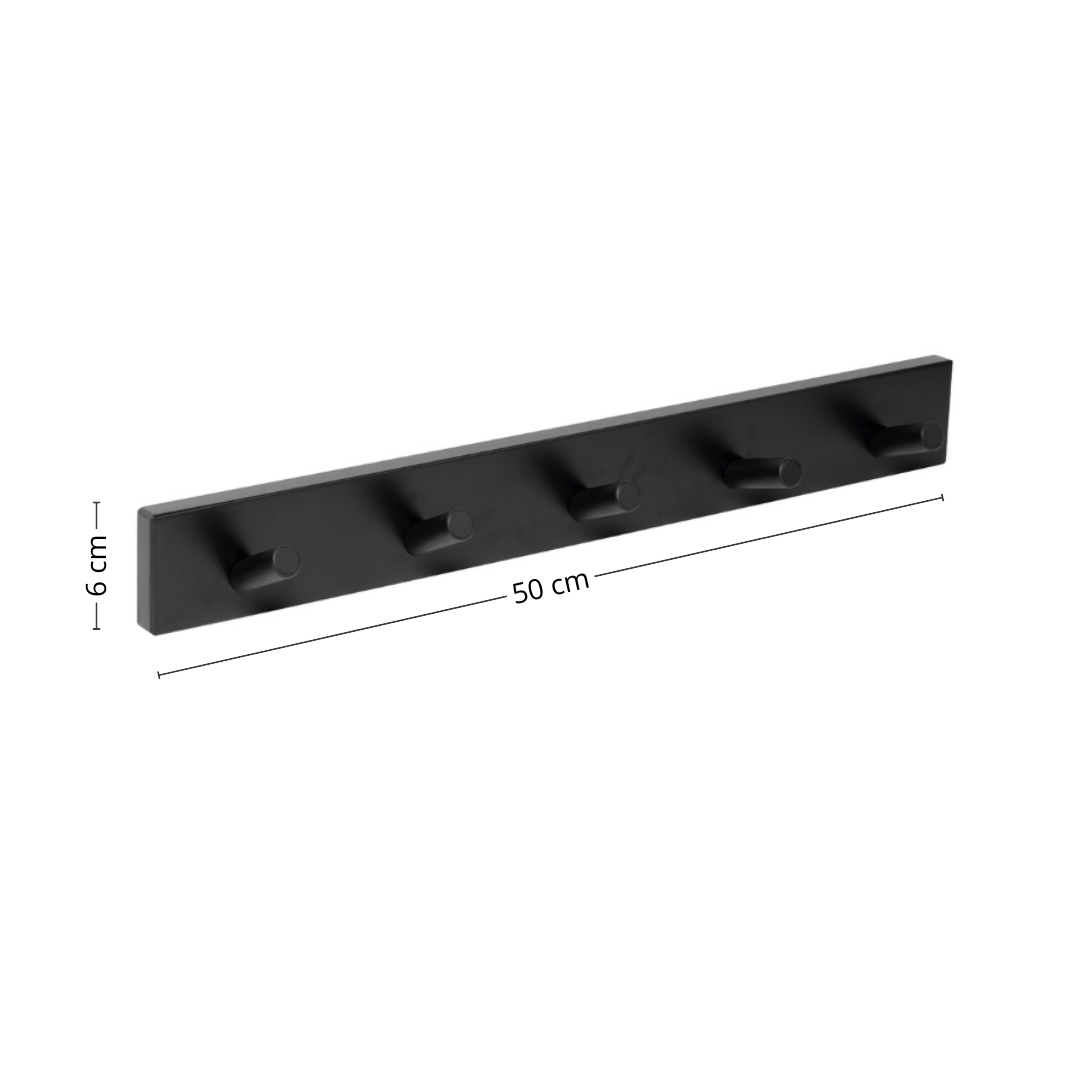 Moderne knaggrekke i sort matt farge og nordisk stil. Du kan enkelt henge opp dine knaggrekker i det rommet du ønsker litt ekstra oppbevaring i. Knaggrekken har et vakkert design med en nydelig sortfarge både som base og på de 5 knaggene. Passer perfekt for deg som ønsker å ha flere opphengsmuligheter i gangen, på badet eller soverommet!