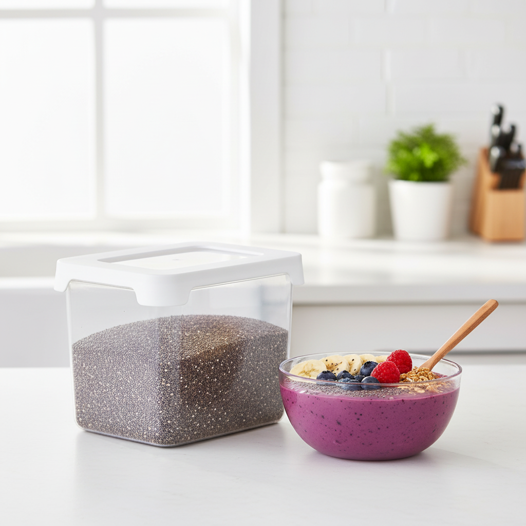 Den kompakte formen gjør beholderen perfekt til mindre ingredienser. Den modulære designen gjør at boksen kan stables sammen med andre beholdere i Vision-serien, noe som gir et ryddig og plassbesparende oppbevaringssystem.
