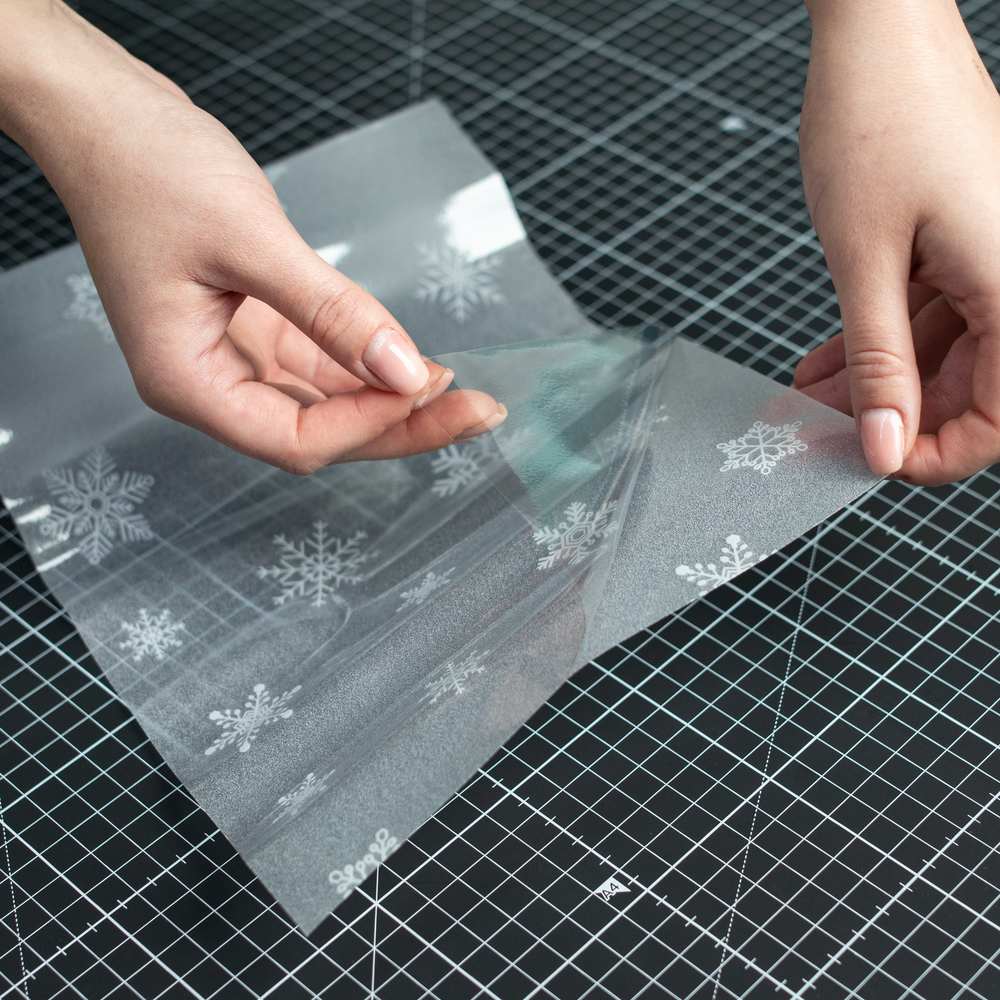 All vindusfolie har beskyttelsesplast, selv om den ikke er like synlig på alle. Denne må dras av og den samme siden skal festes på vindu.