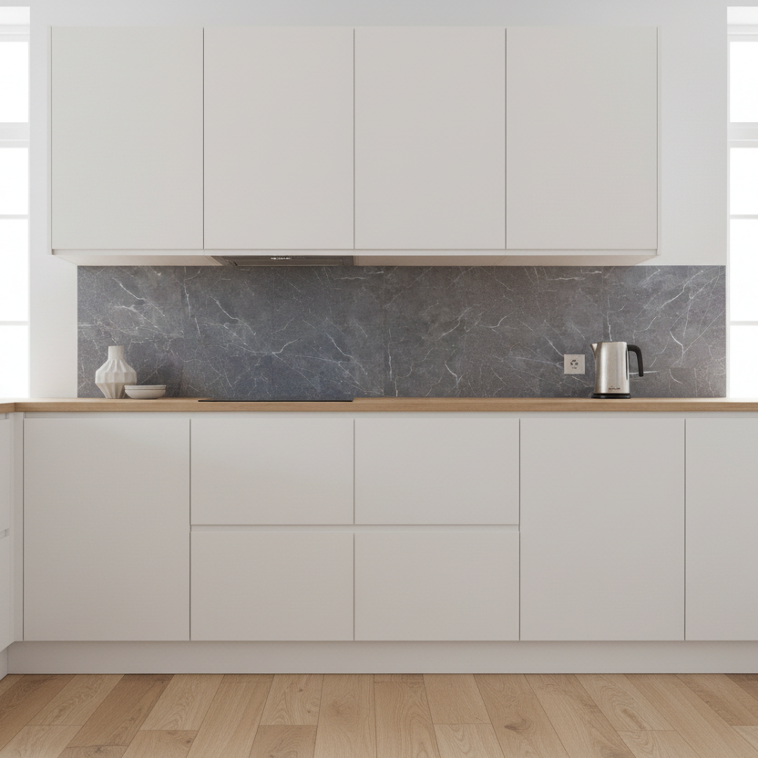 Firenze selvklebende fliser har et marmorinspirert design i gråtoner med hvit marmorering. Mønsteret er inspirert av klassisk stein og passer godt i rom der du ønsker et mer eksklusivt uttrykk.