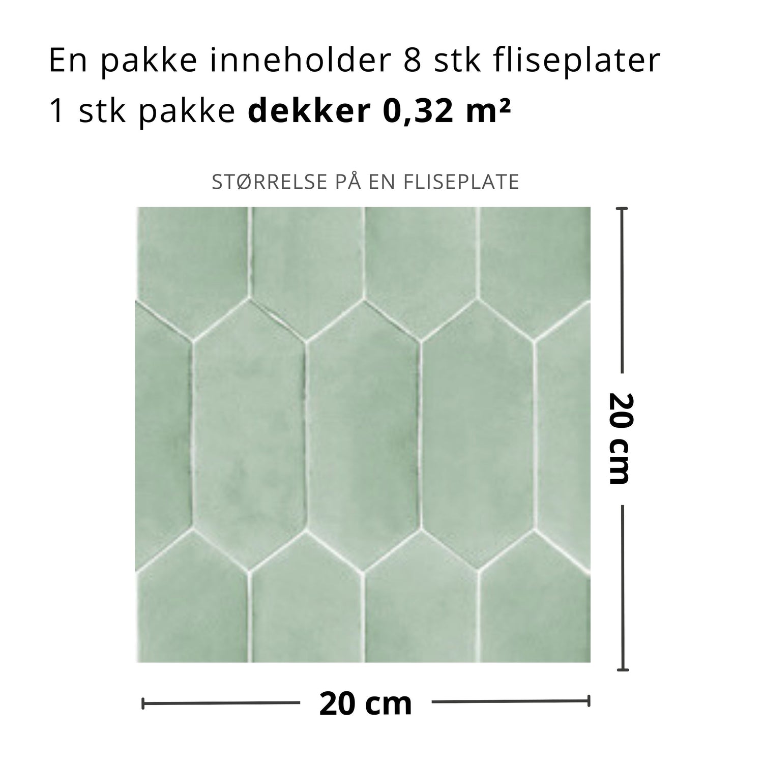 - Størrelse på en flisplate: 20 x 20 cm
