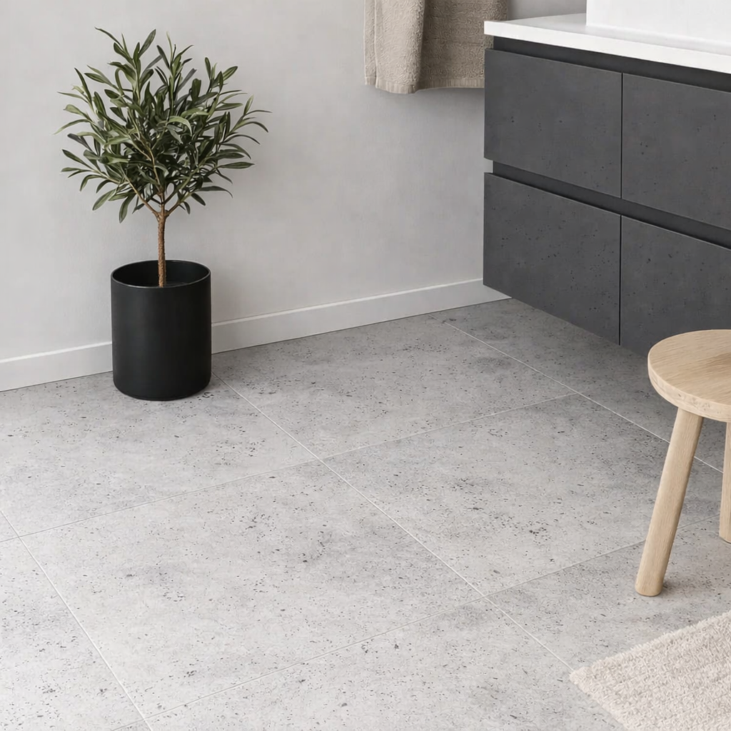 Sydney selvklebende fliser har et betonginspirert design i gråtoner. Designet etterligner porøs betong og gir et moderne preg som passer godt i både minimalistiske og mer klassiske interiører.