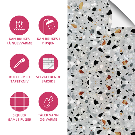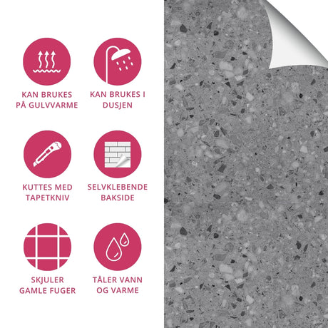 Mange av våre selvklebende gulvfliser kan brukes sammen med gulvvarme. Dette gjør dem perfekte for hjem i kaldt klima, og gir ekstra komfort i vintermånedene. Kombiner stil og funksjon for et hjem som både er varmt og elegant.