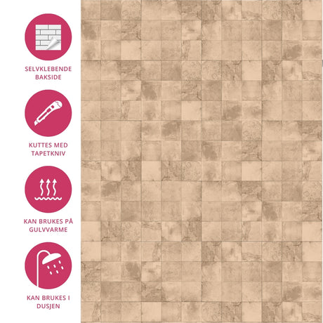 Oppgrader hjemmet ditt i dag med selvklebende gulvfliser fra Lindas Dekor. Bestill nå og gi rommene dine et stilfullt og funksjonelt preg med minimal innsats!