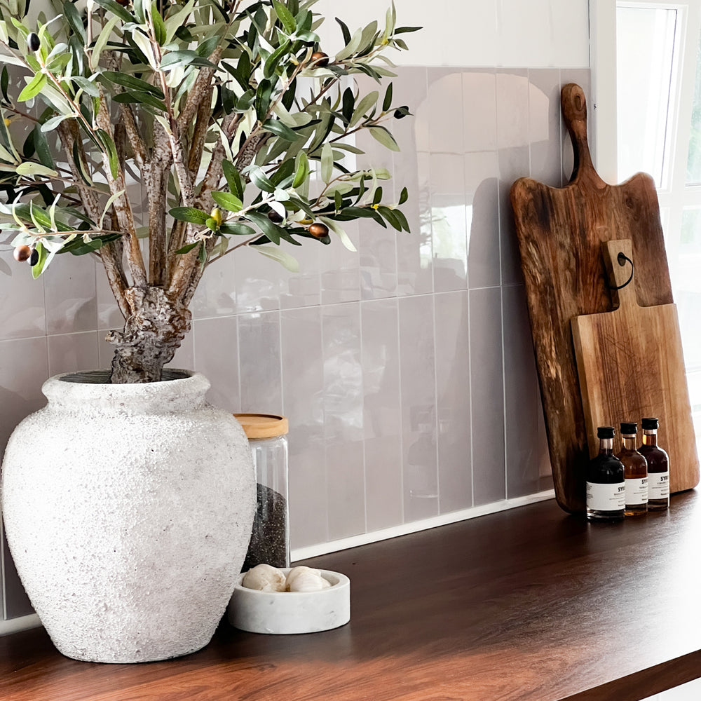 Elegante selvklebende fliser i en nøytral kremfarge. Veggflisene har fasettslipt kant som gir et moderne uttrykk på kjøkkenvegg, bad eller vaskerom. Flisene har en høyglanset finish med elegant tekstur som minner om naturlig betong eller stein.