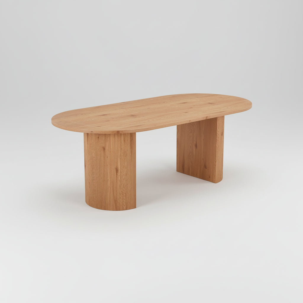 Boavista spisebord 210 cm i natural finish gir spiseplassen et lyst og lunt uttrykk. Den ovale bordplaten gjør det enkelt å samle flere rundt måltidene. Et bord som tilfører varme og naturlige detaljer til rommet samtidig som det er praktisk i bruk.