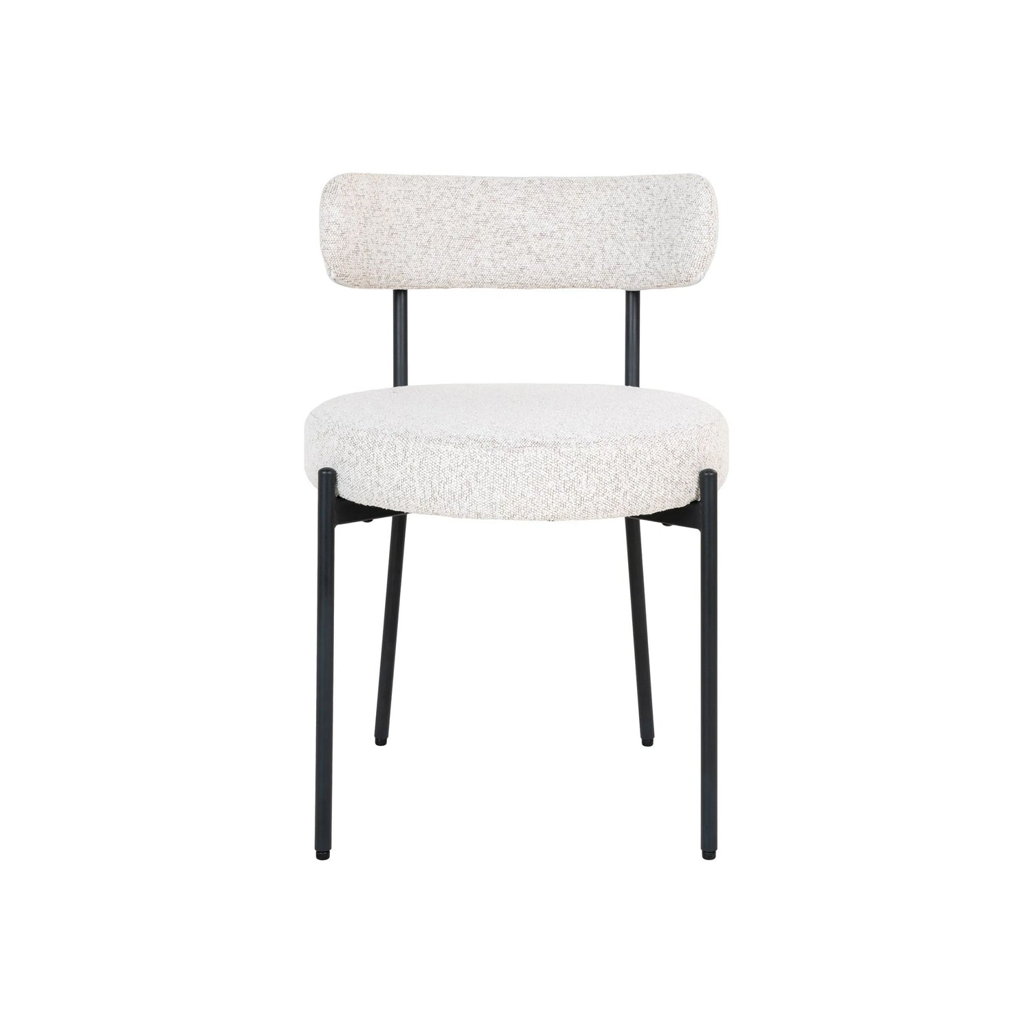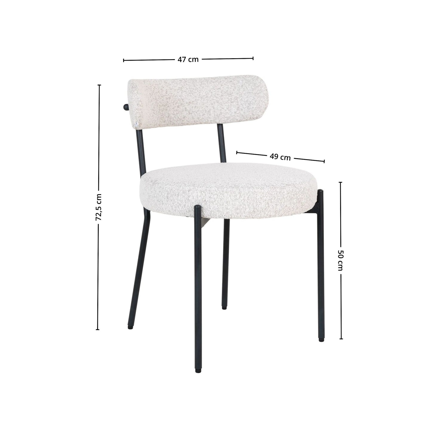 Oppgrader spiseplassen med disse moderne og stilrene Badalona-stolene fra House Nordic. Med polstret sete og rygg i hvit bouclé og slank sort metallramme, kombinerer de komfort og elegant design.