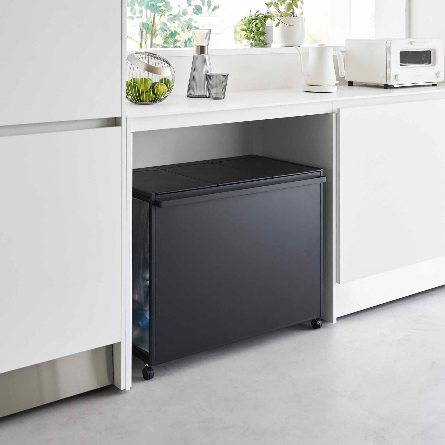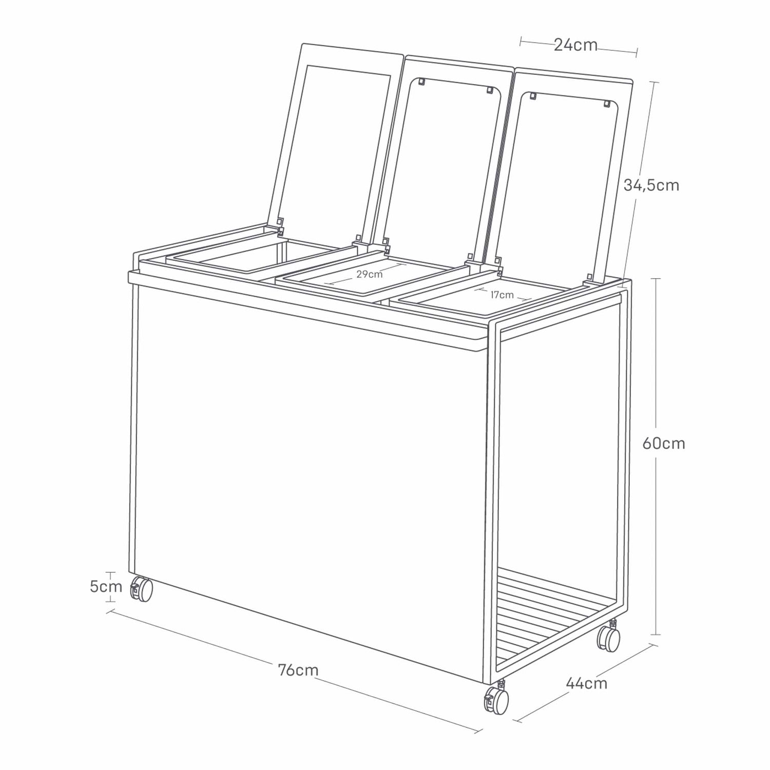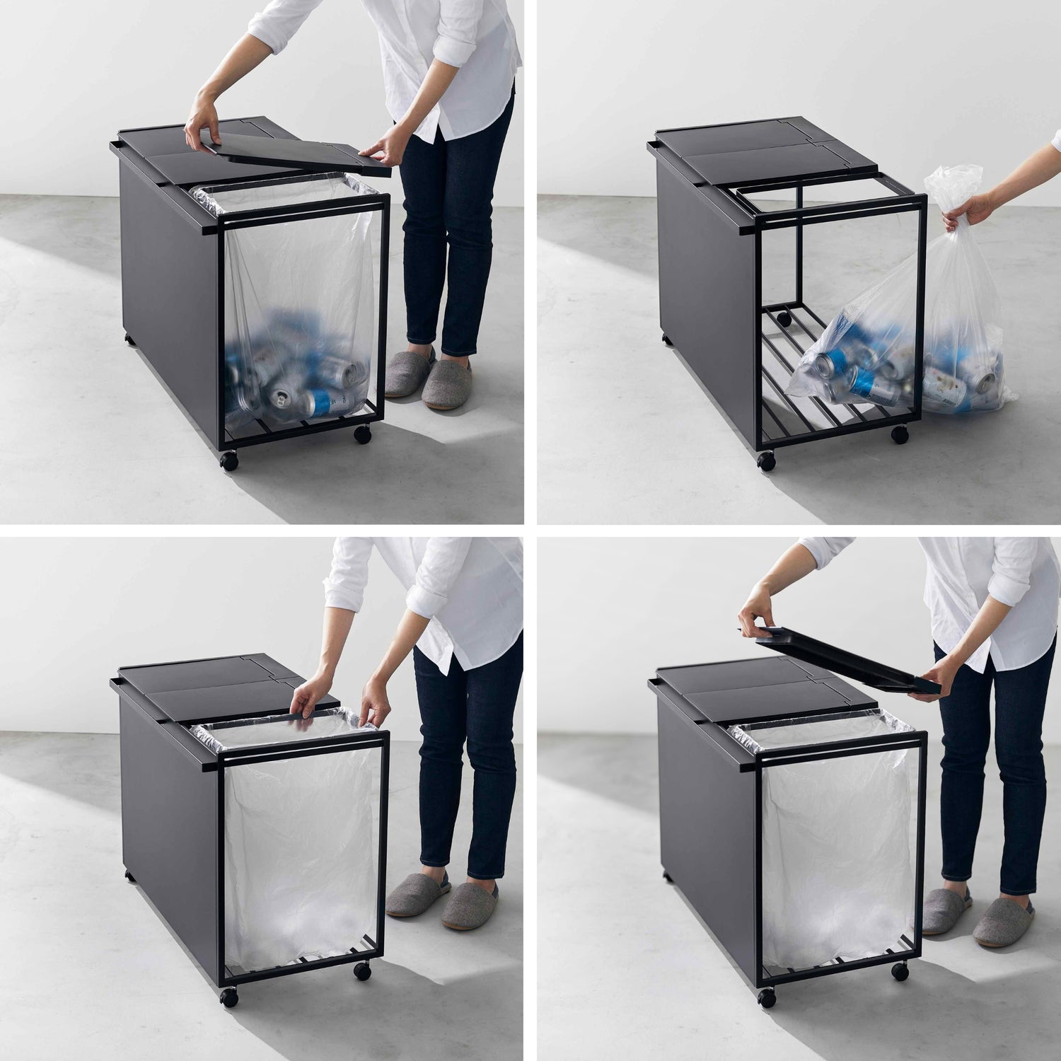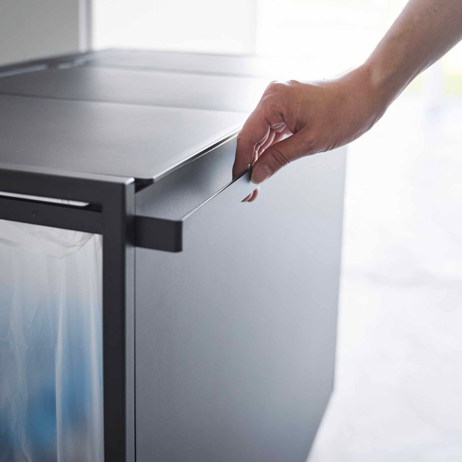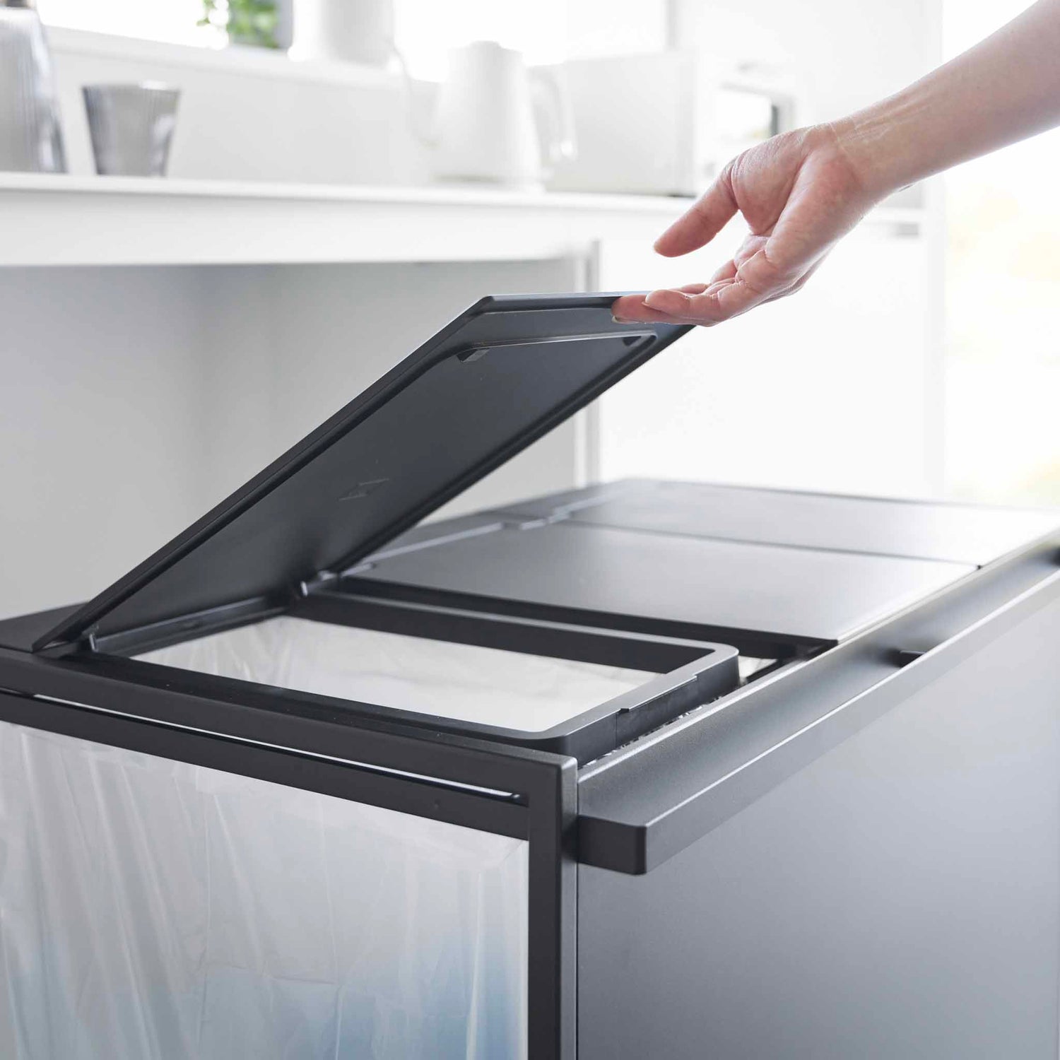 Kildesortering blir raskt en frustrasjon når flere poser flyter rundt på kjøkkenet. Dette praktiske kildesorteringsstativet samler alt på ett sted og gjør sorteringen enkel i hverdagen. Den smarte konstruksjonen holder posene åpne og stabile, samtidig som lokket skjuler avfallet og gir et ryddig uttrykk på kjøkkenet.