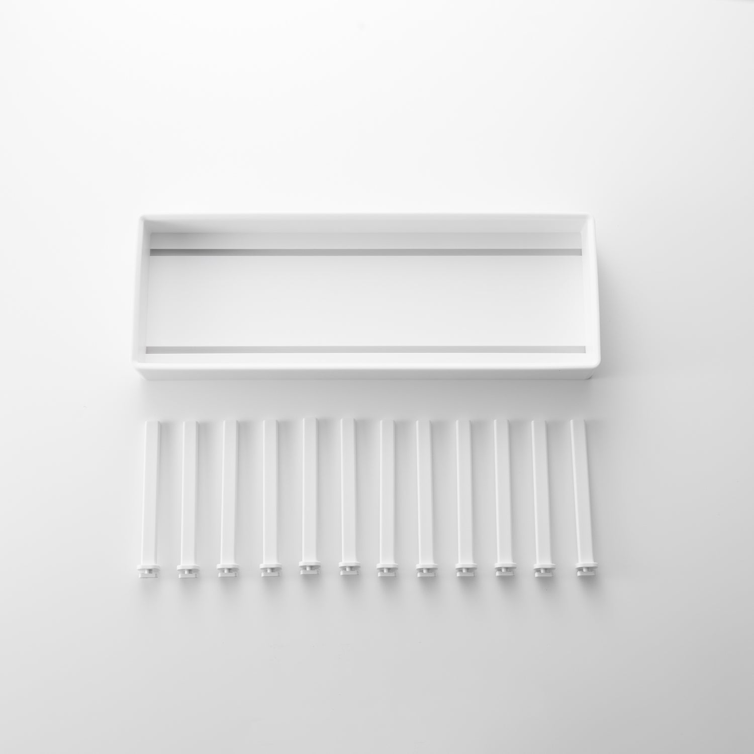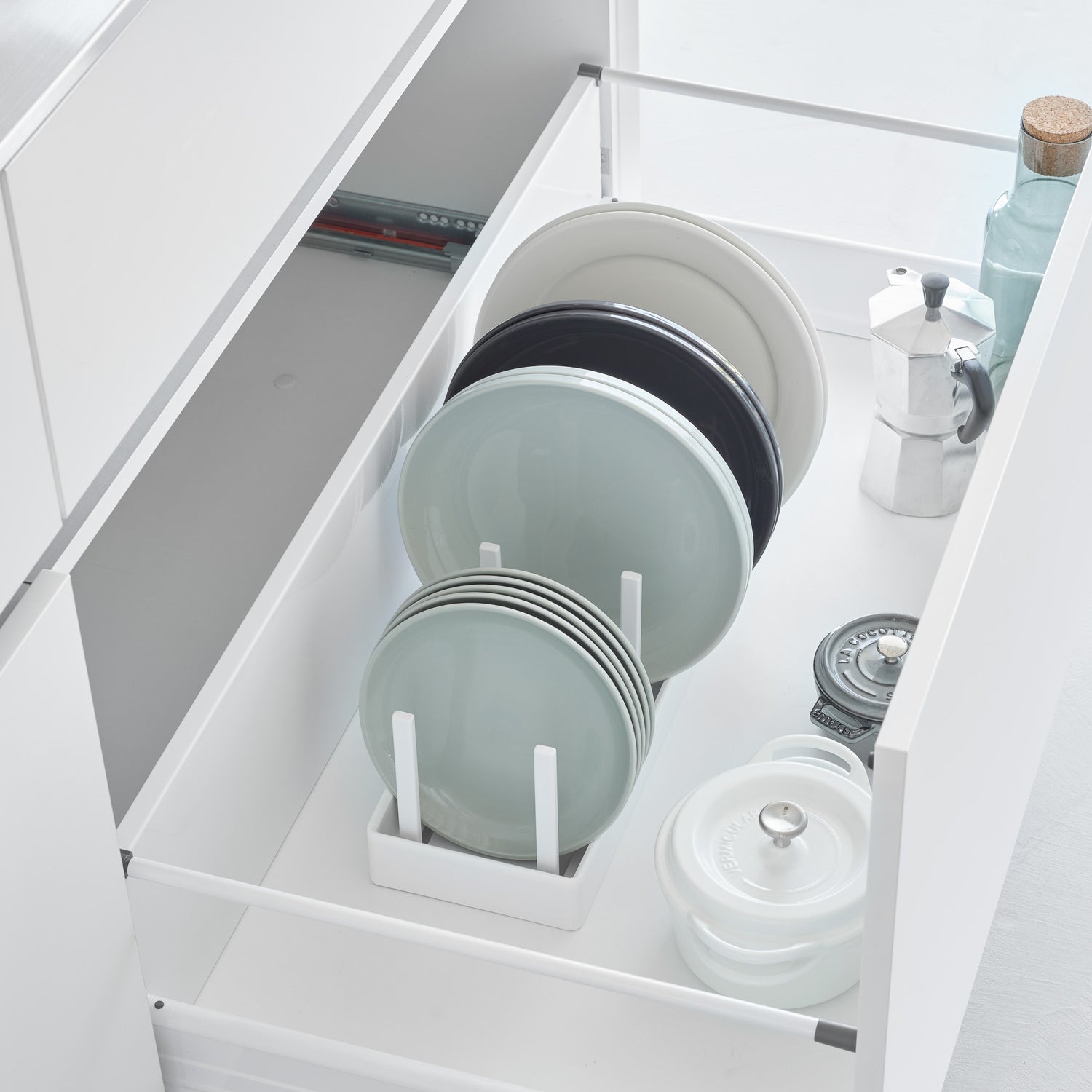 Bunnen er utstyrt med en sklisikker matte som sørger for at alt står stødig, selv ved åpning og lukking av skuffer. Perfekt for å utnytte plassen i kjøkkenskapet eller skuffen, og for å slippe rot blant kokekar og lokk.