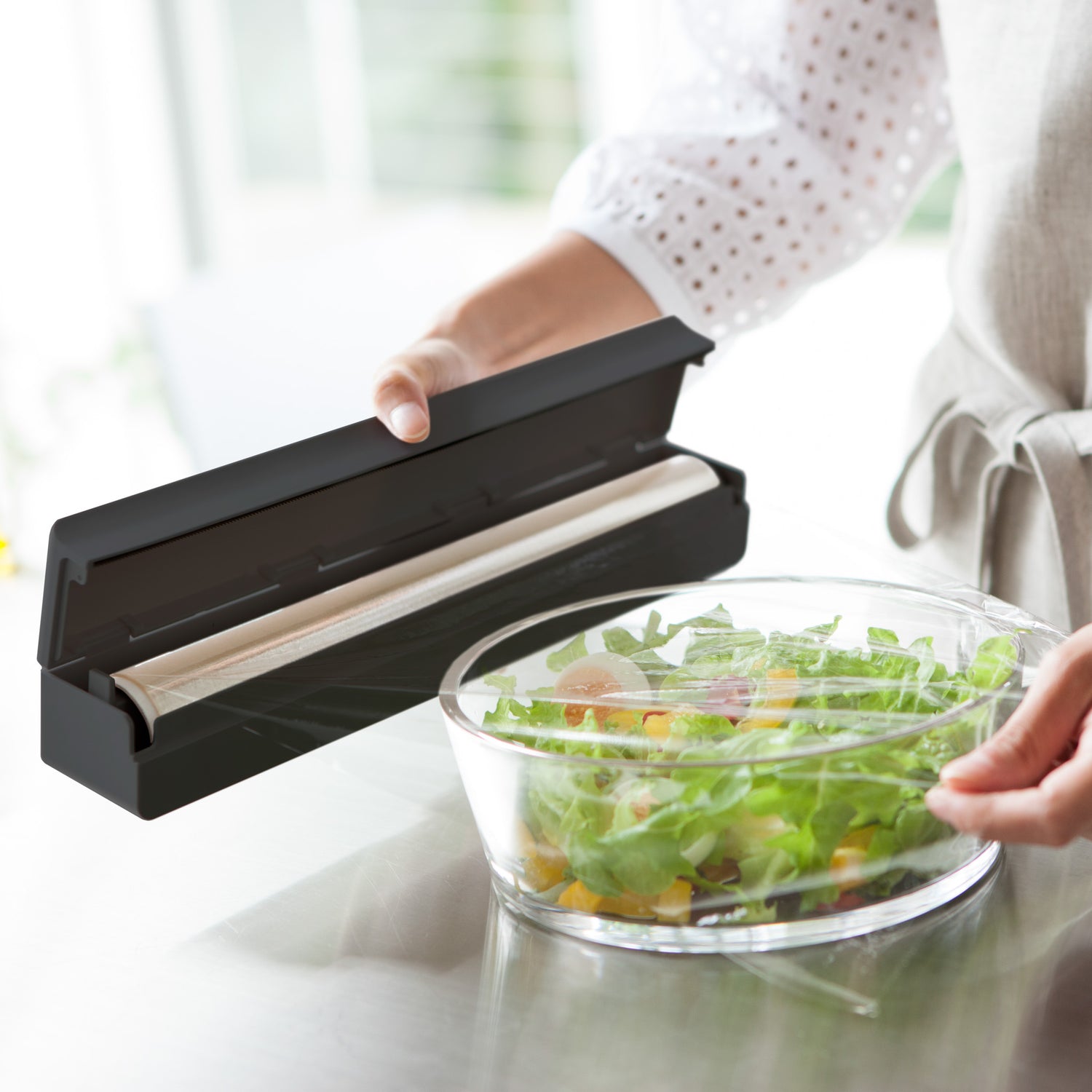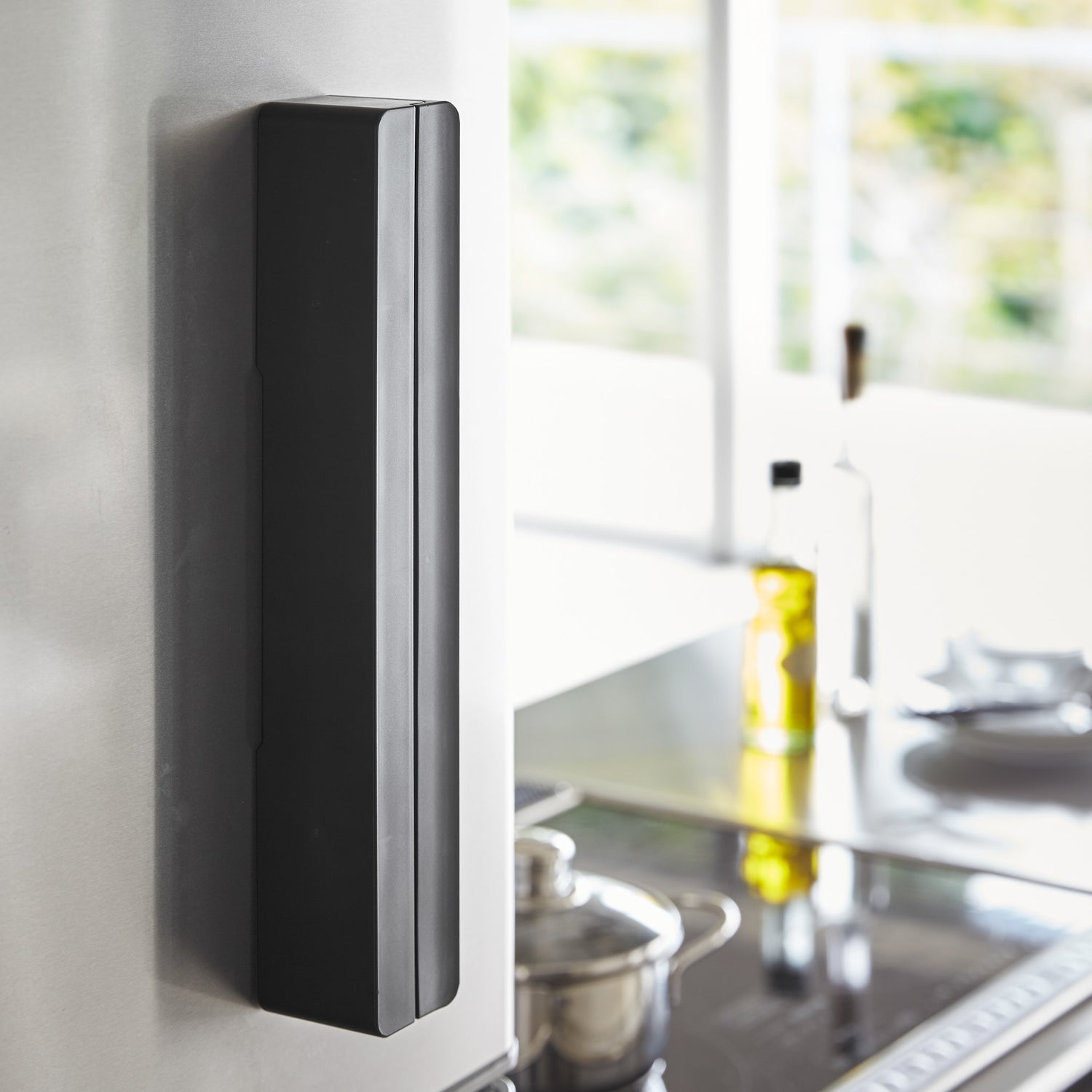 En smart foliedispenser som festes med magnet på kjøleskap, oppvaskmaskin eller andre metallflater, helt uten skruer. Den sterke magneten holder holderen stabil under bruk, slik at du enkelt kan rive av plastfolie, aluminiumsfolie eller bakepapir med én hånd.