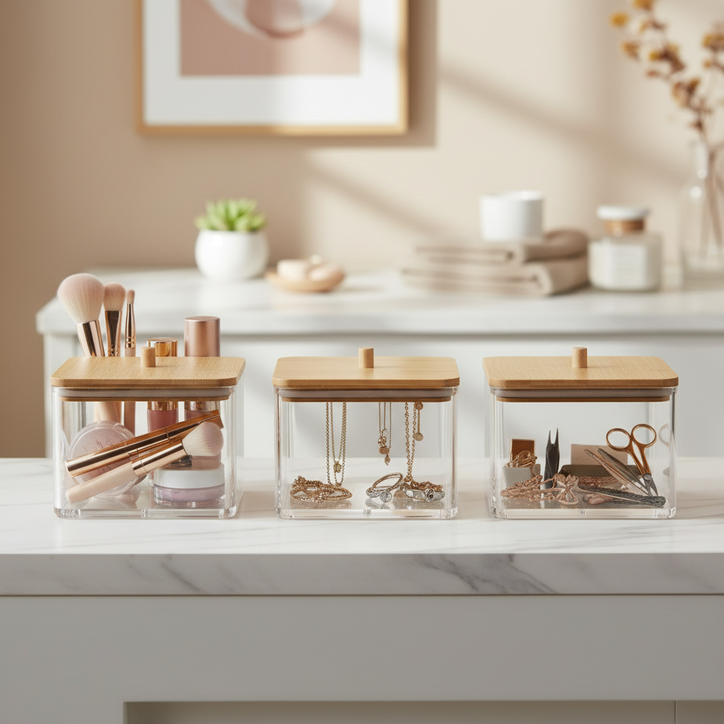 Oppbevaringsboks med bambuslokk 9,5 x 8,5 cm
