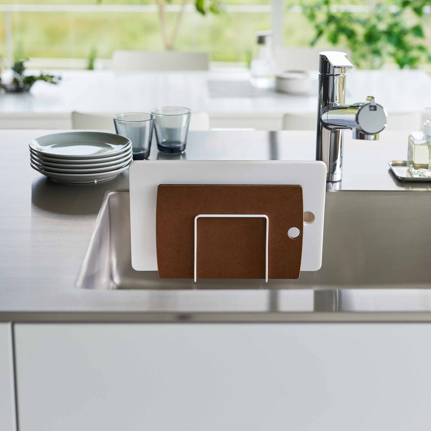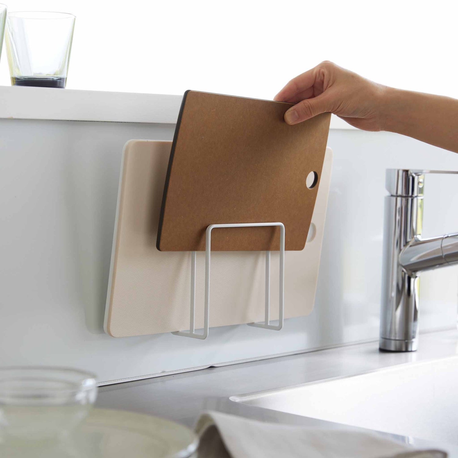 Skjærebrett som står løst på kjøkkenbenken kan fort gjøre kjøkkenet mer rotete enn nødvendig. Med denne selvklebende holderen får du en enkel løsning som samler skjærebrettene på veggen og frigjør verdifull plass rundt matlagingen.
