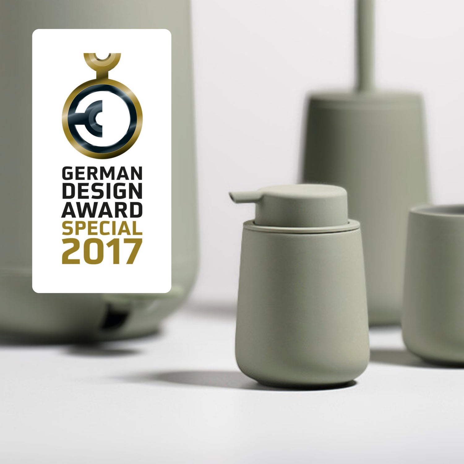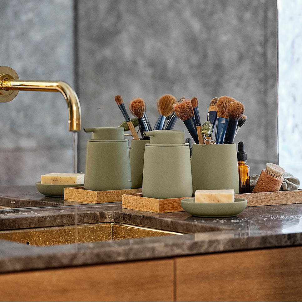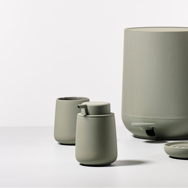 Detaljene avgjør helheten på badet. Nova One såpedispenser i Matcha Green fra det danske merket Zone vant German design award for denne flotte utførelsen.