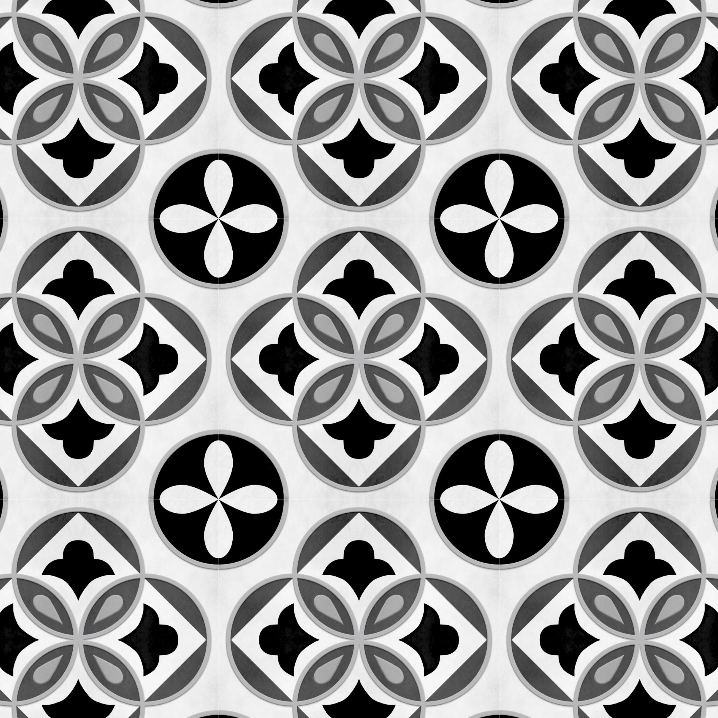 Clara grå er en selvklebende flis med historisk design i mørk, lys og mellomgrå. Flisen kommer i dempet farger med en nøytral undertone.