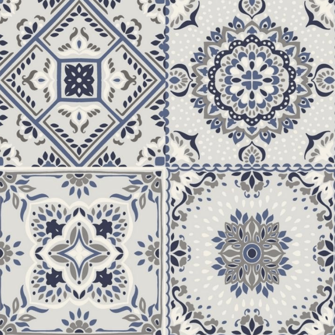Marokko selvklebende fliser har et nydelig antikk design som passer perfekt inn i hjemmet. Flisene har et flott mønster i hvit, grå og dempet blå. Ser like fine ut på gulv som på vegg.