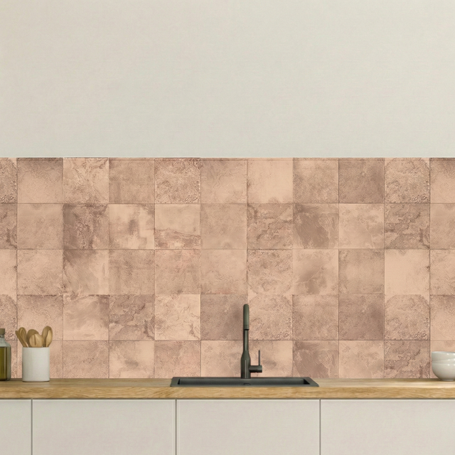 Flisene er laget med slitesterk overflate som tåler fukt, fett og daglig bruk, og den kraftige limsiden gjør at de sitter godt på de fleste glatte underlag. Bodø Sand-flisene kan enkelt tilpasses med saks eller tapetkniv, og passer derfor like godt på små veggflater som større prosjekter.