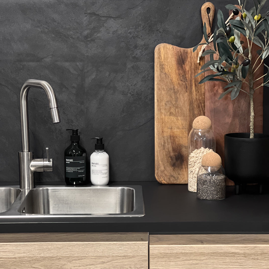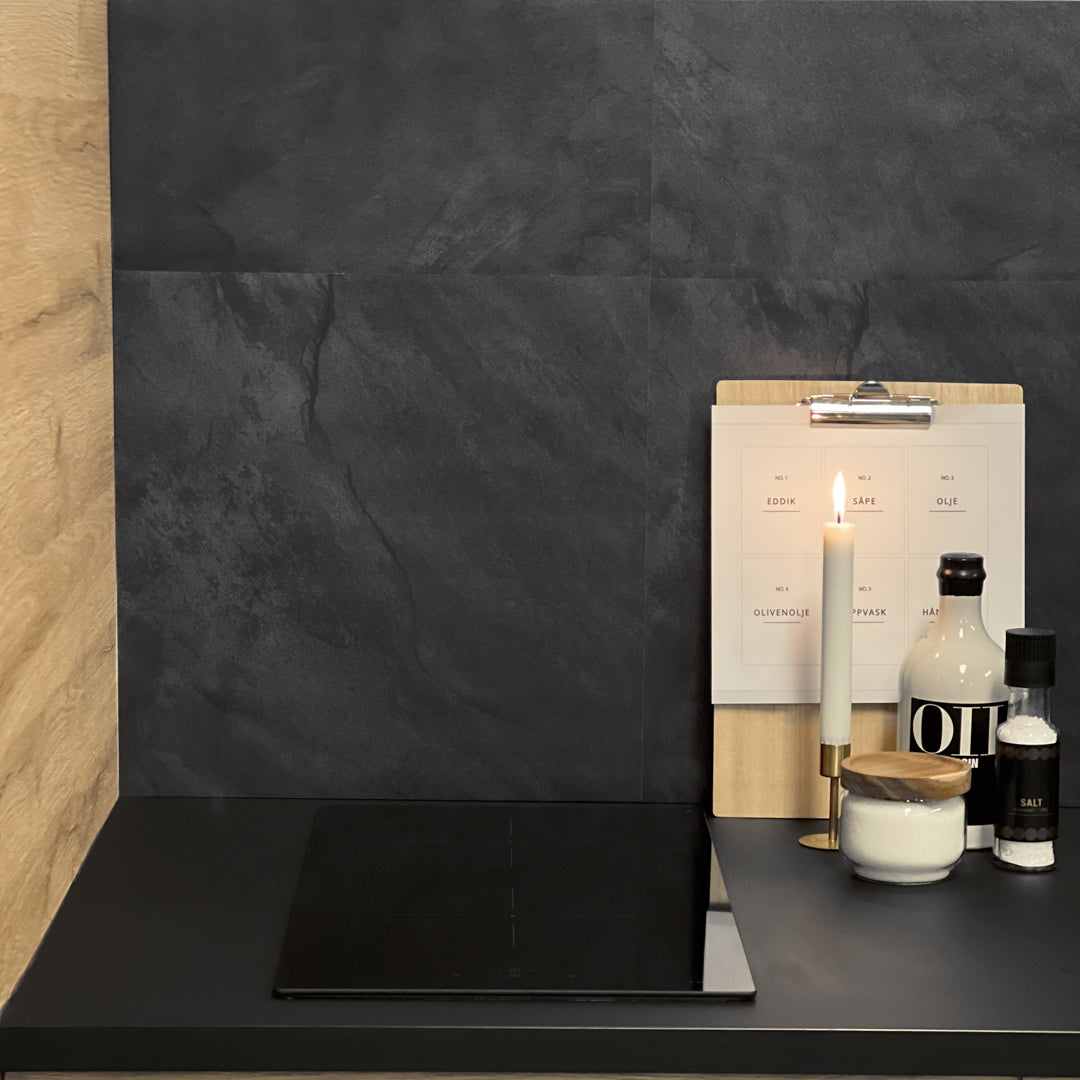 Skifer antrasitt selvklebende fliser på kjøkkenvegg